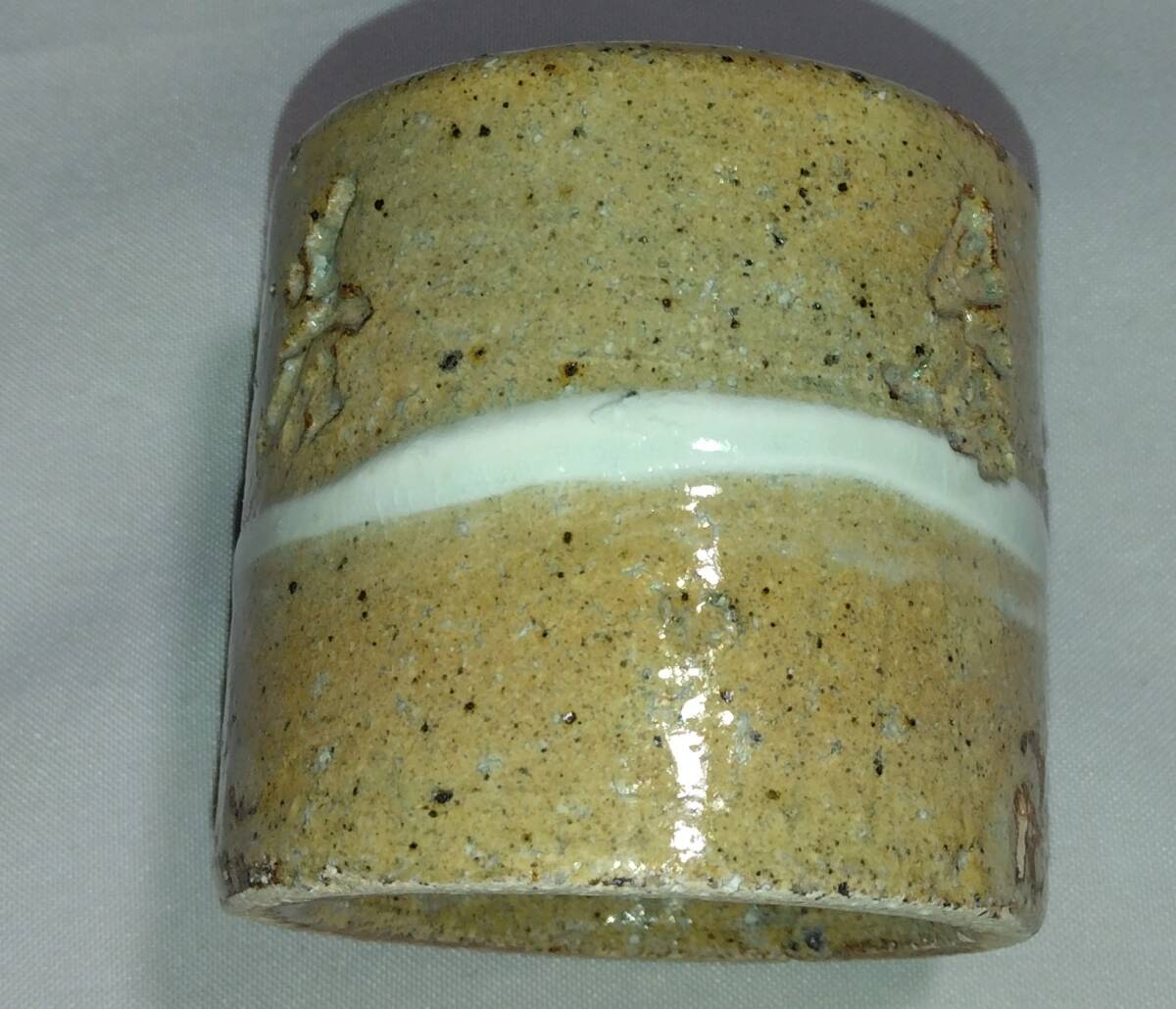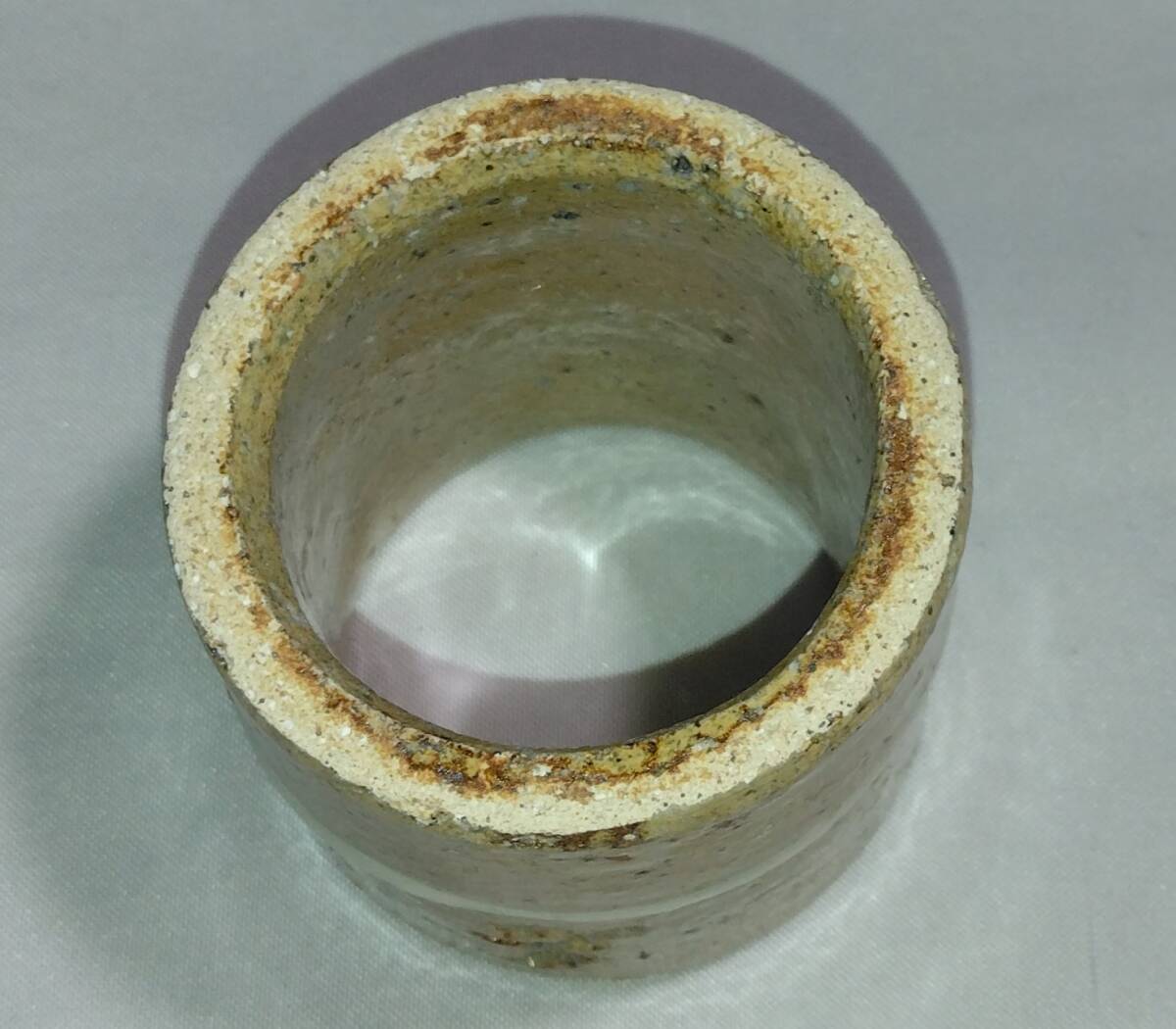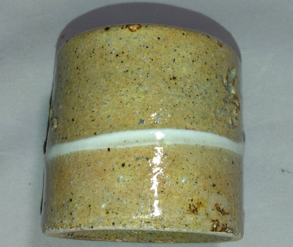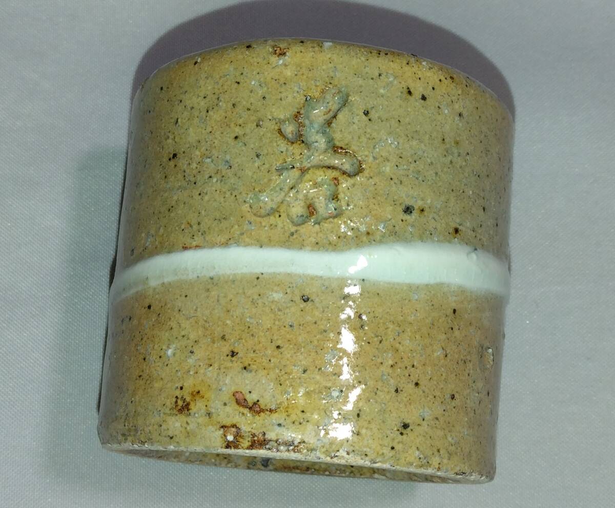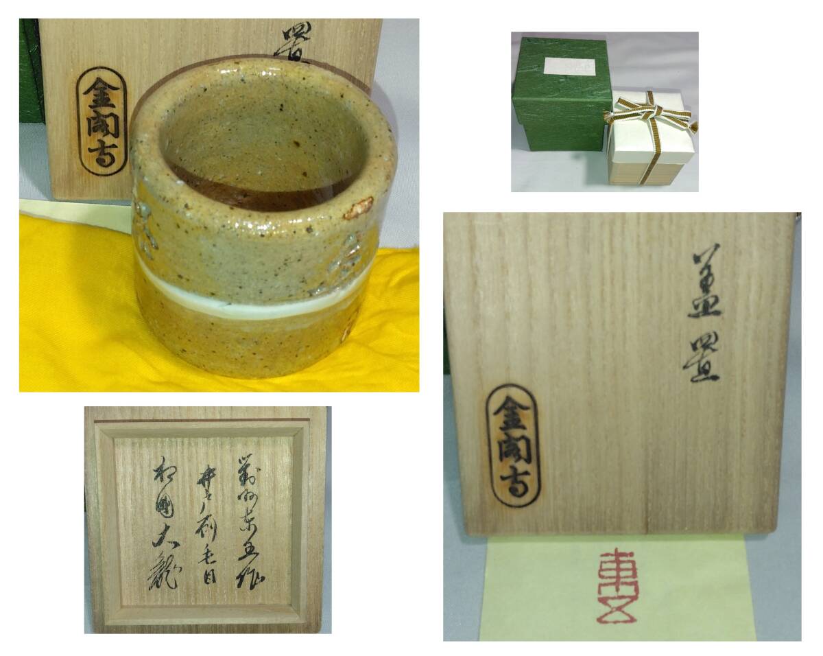 小林東五作 金閣寺刷毛目蓋置 の出品です。李朝陶芸に造詣深い小林東五の手による「高麗刷毛目蓋置」、胴に金閣寺有馬頼底(大龍)老師の書文字「金閣」と老師の花押が陰刻された逸品、長期所蔵に伴う極微細な擦れ等の他特に目立つダメージ無く大変きれいな良い状態です。共箱蓋裏に老師の書を頂いてます。