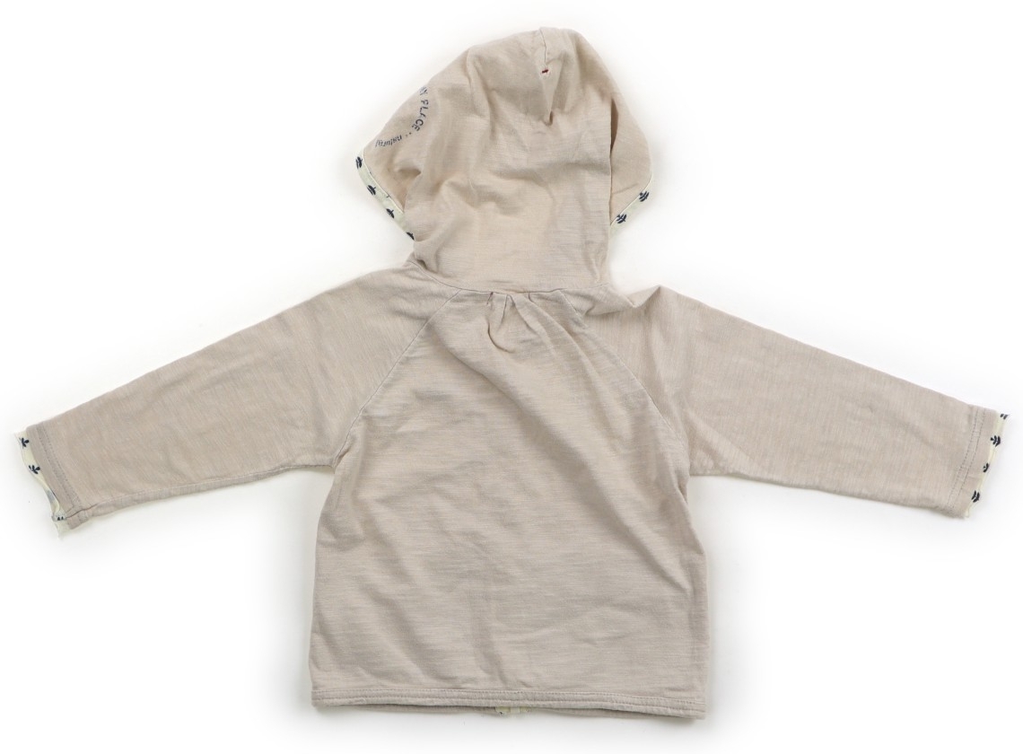 コットンカットソー素材。全体的に毛羽立ちと色褪せが強いです。フードに小さな茶色いシミがいくつか見られますが、まだお使いいただけそうです。