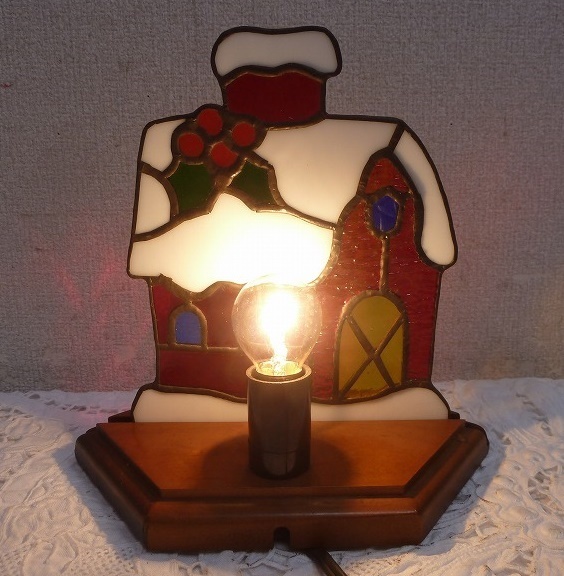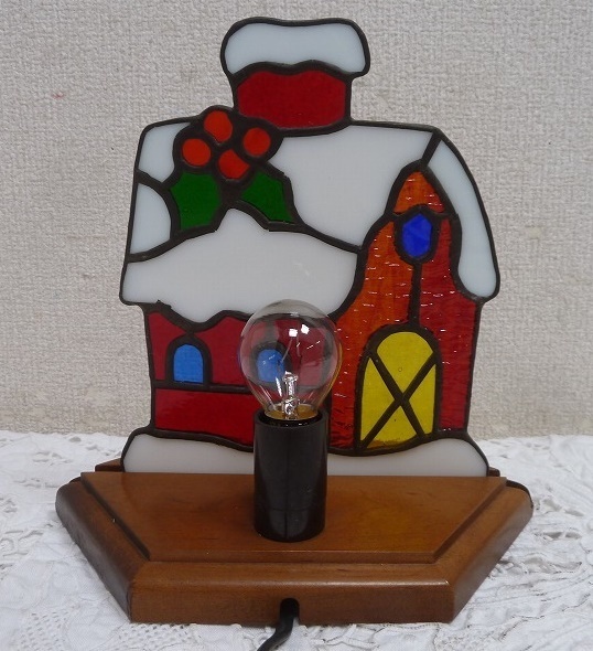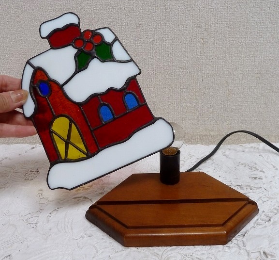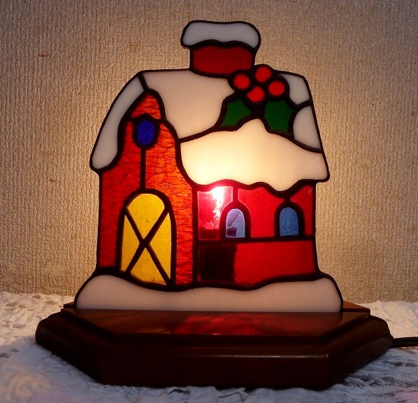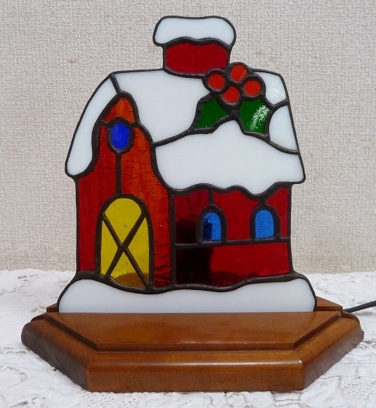 (☆BM)ステンドグラス(0801-④)X’mas スノーハウス クリスマス ランプ テーブルスタンド 卓上照明 置き型 オーナメント オブジェ