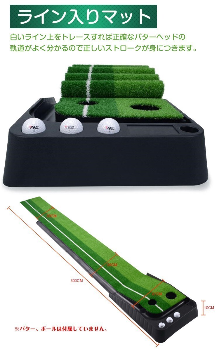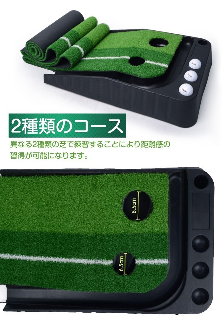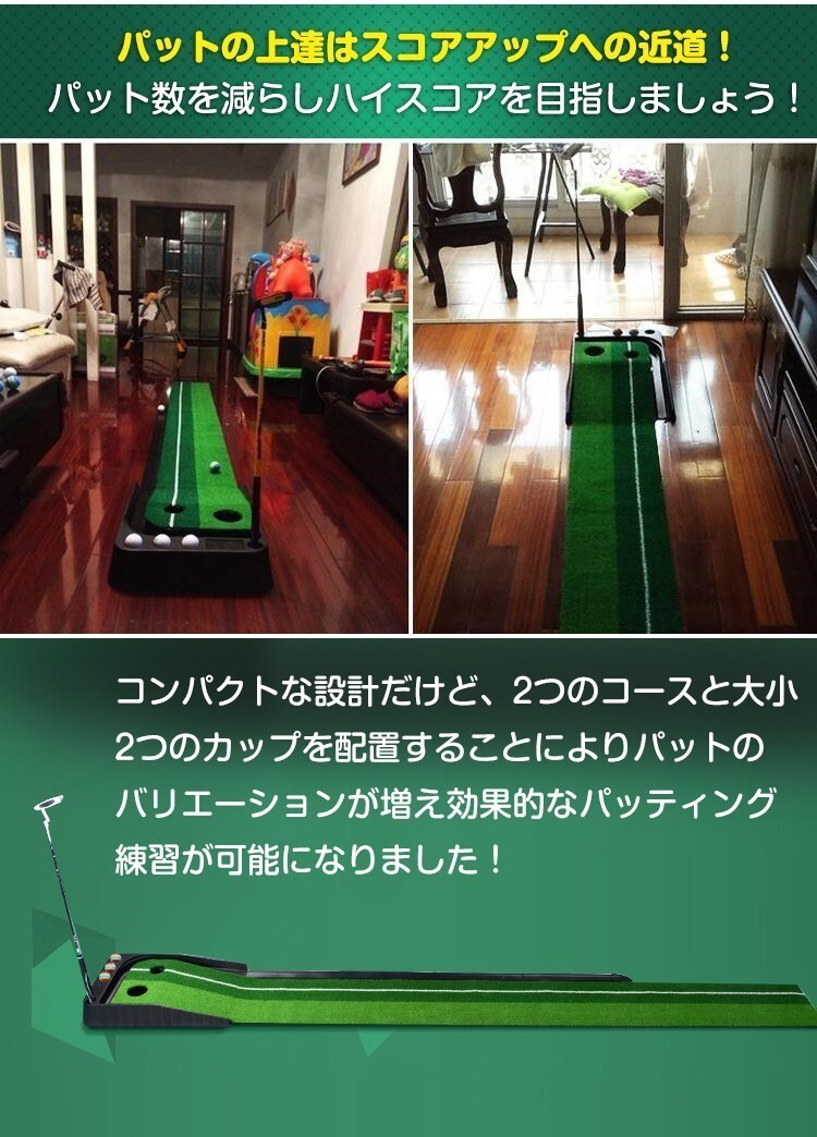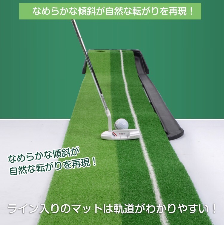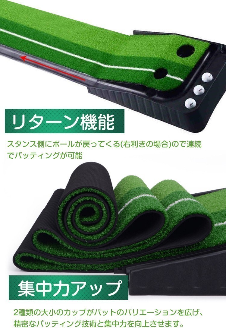 ゴルフ 練習 器具 マット パターマット 3m 室内 2WAY パット ライン入り 2種類 芝 返球 トレーニング パッティング ヘッド 軌道 大型 ad203