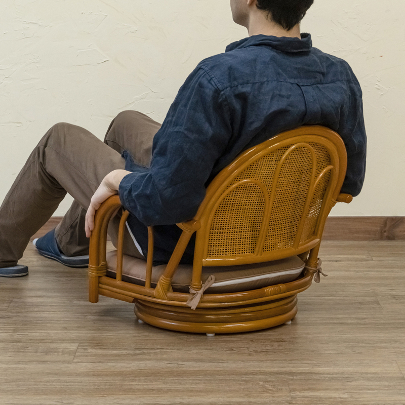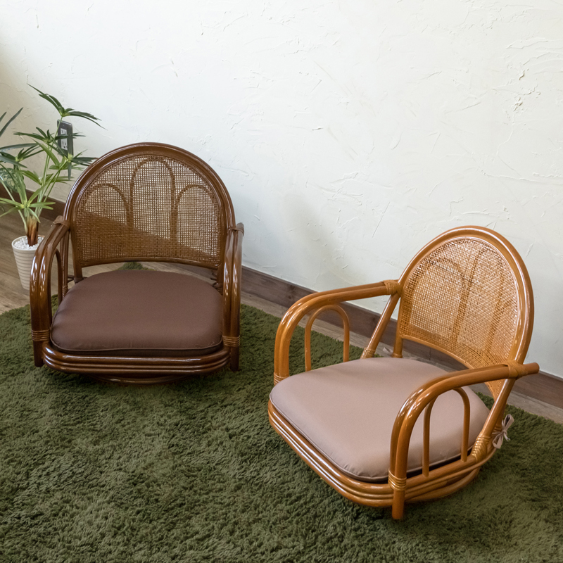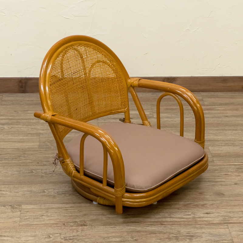 | 商品説明 | 完成品 肘付き&回転する座面で立ち座り楽々! ちゃぶ台とも相性ぴったりなアジアンロータイプ座椅子! ! ラタンシリーズの回転座椅子。 ちゃぶ台やこたつなどにあわせて使用するのにぴったりなロータイプのラタン座椅子です。 肘かけも付いているので立ち上がりも楽々。 座面は360度回転するので座ったまま好きな方向に体を動かせます。 |