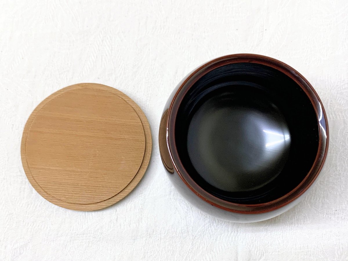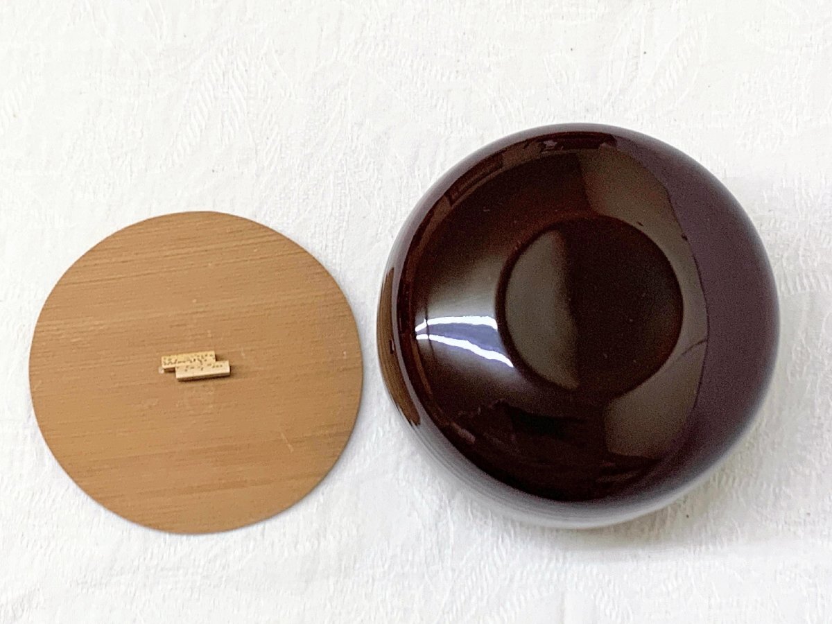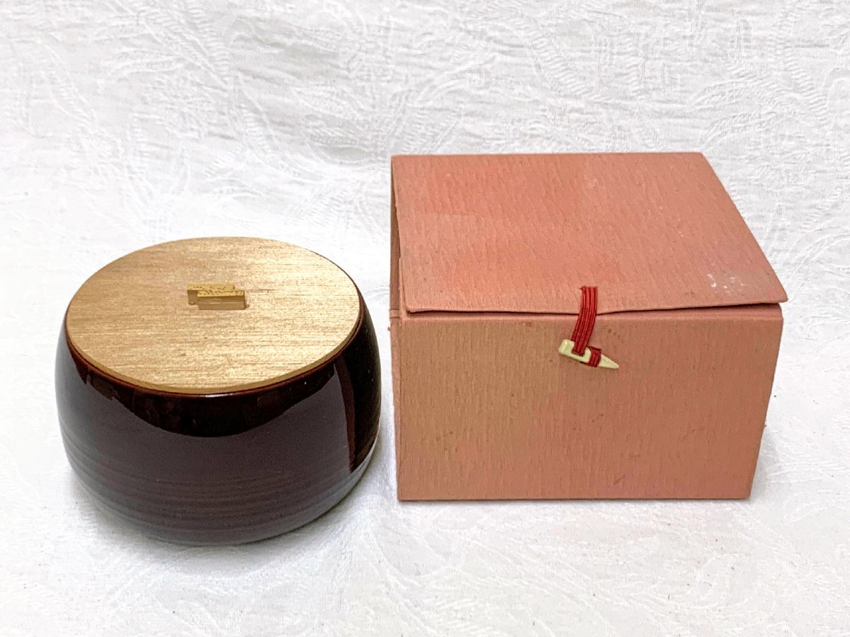 17719/未使用保管品 溜塗内黒 木地蓋付 小鉢 菓子鉢 紙箱 漆器 木製 茶器 茶道具