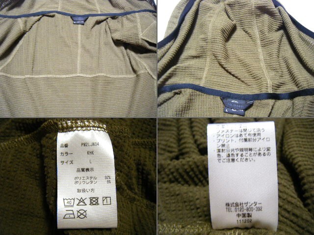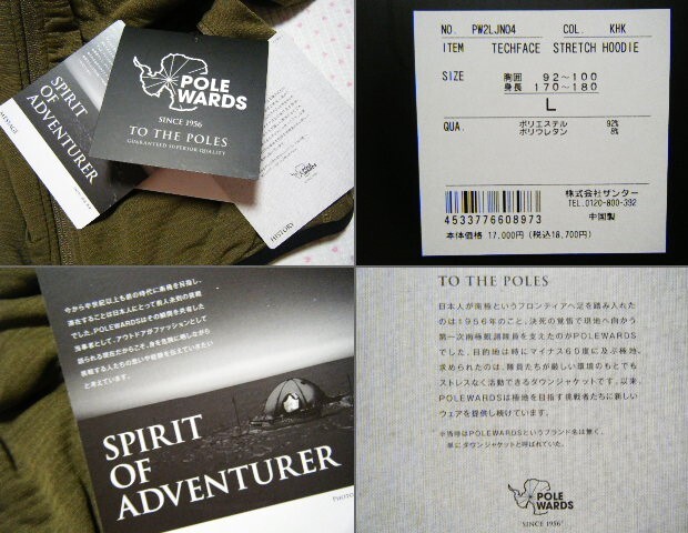 本体は軽量ポリエステル、ポリウレタン素材。   薄手で通気性の高いストレッチフリース生地を使用し、保温、透湿、吸汗速乾機能を併せ持ち、肌面 (裏面) は、凹凸加工されたフリース生地を採用し、汗等によるベタつきを抑え、衣服内をドライで快適な状態を保つアウトドア用高機能フルジップパーカー。   機能性の高く、アクティブなアウトドアシーンで、オールシーズン着用可能モデル、またミドラーとしても着用可能。    左胸ポケットは止水ファスナー仕様で、両サイドにファスナー付きポケットあり。   フード顔回り、袖先、裾先はパイピング縫製仕様。    モデル名   POLEWARDS TECHFACE STRETCH HOODIE JACKET    表記カラー  KHK / カーキ系