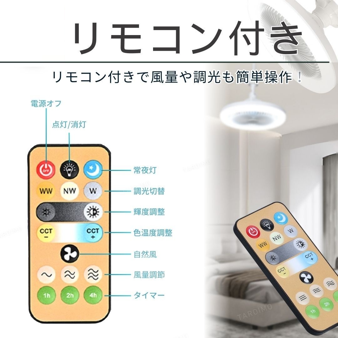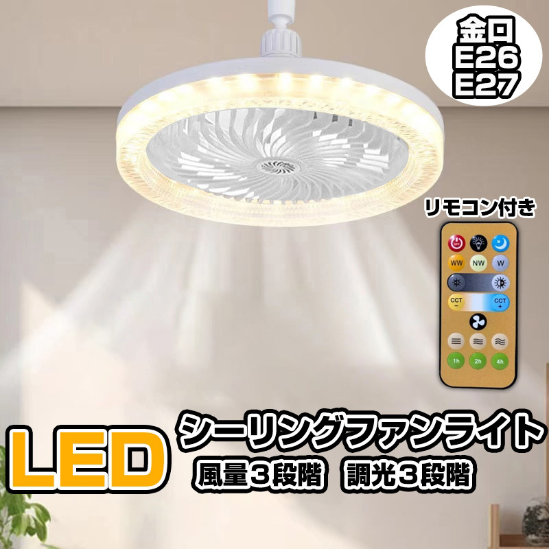 シーリングファンライト 小型 シーリングライト LED ファン E26 E27 ソケット対応 リモコン付き 3段階調光 3段階 風量調節 静音 簡単取付