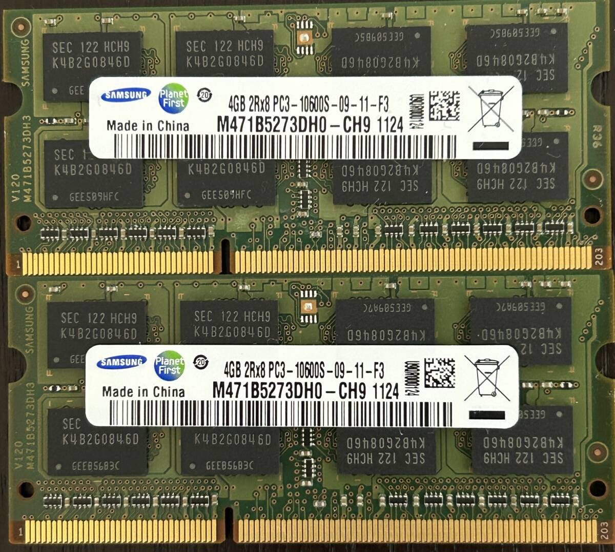 即決 動作確認済み SAMSUNG サムスン SO-DIMM 204pin DDR3 PC3-10600S 4GB×2枚 ノートパソコン用  714