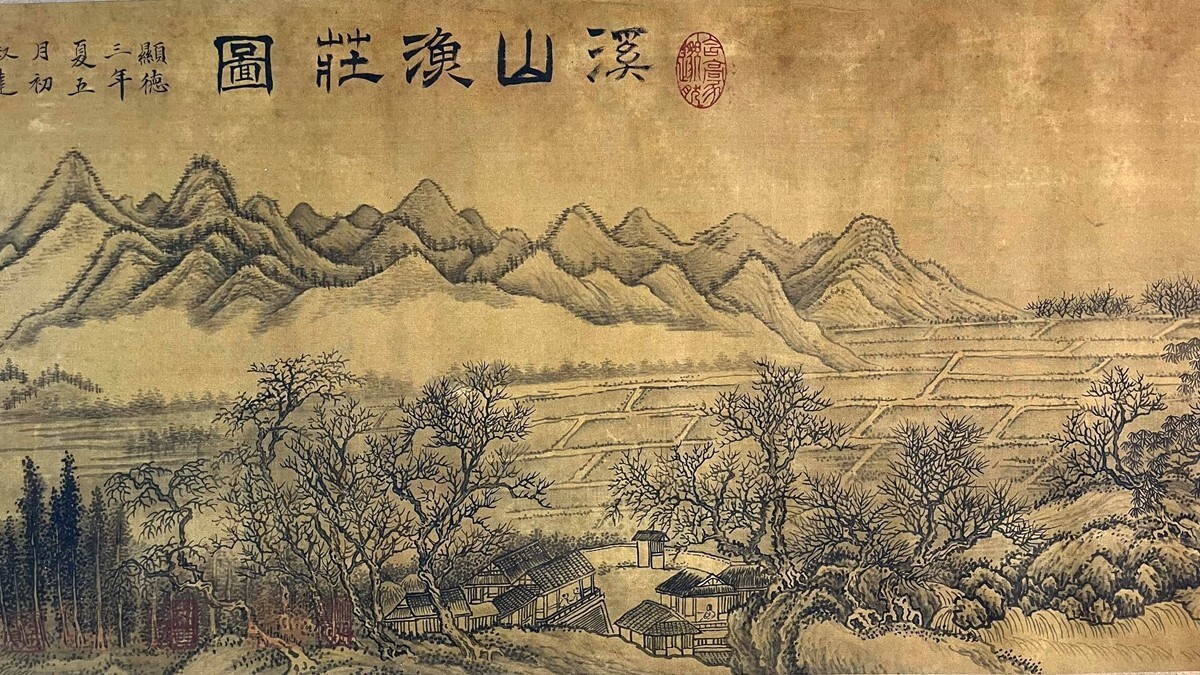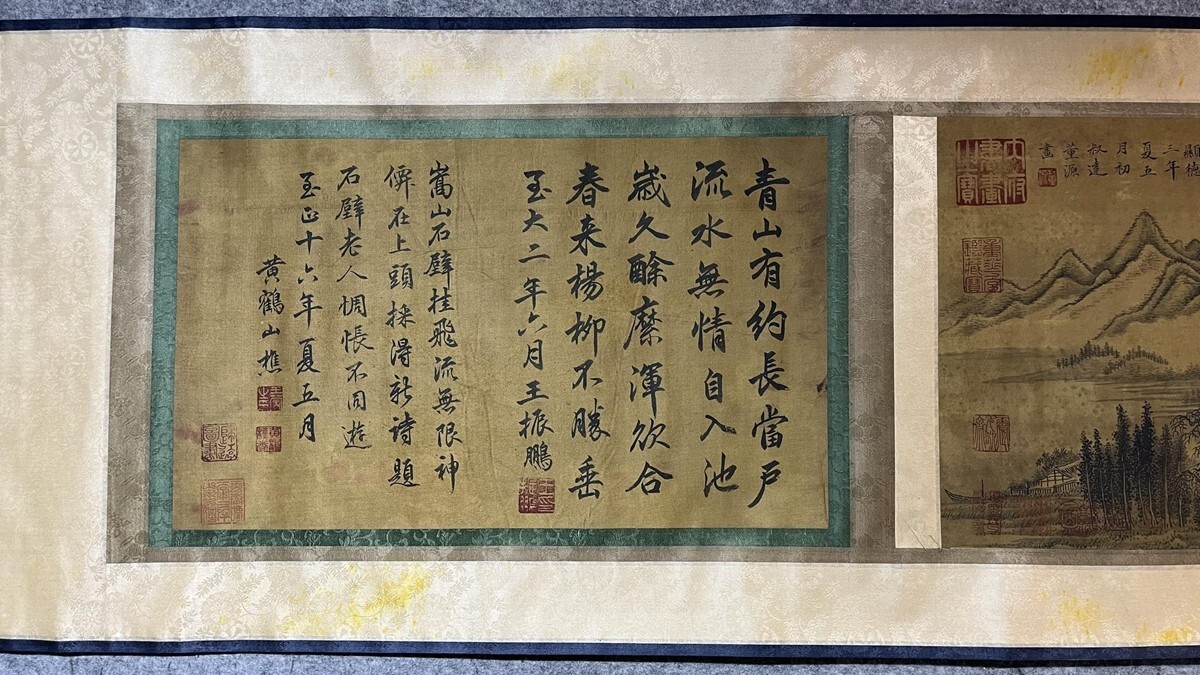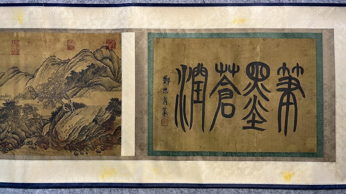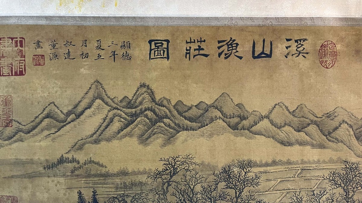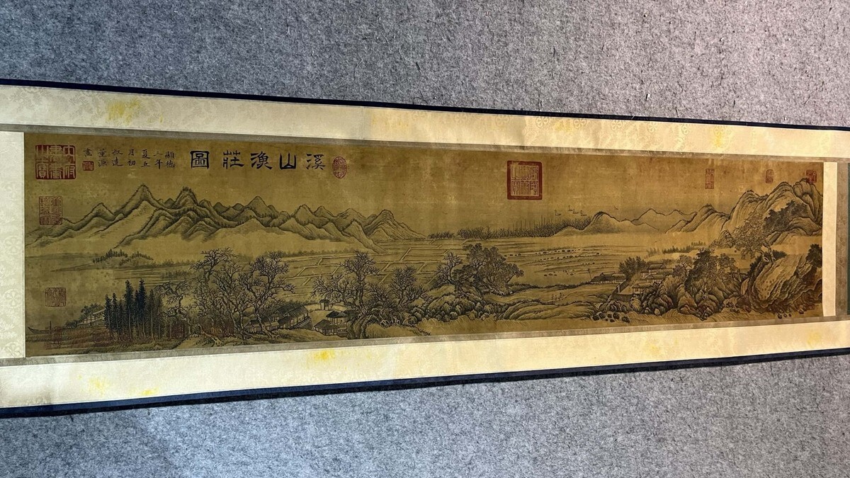 中国書画「五代 董源 山水図長巻」肉筆絹本 掛け軸 墨寶妙品 書画横軸 巻き物 古美術 旧蔵出
