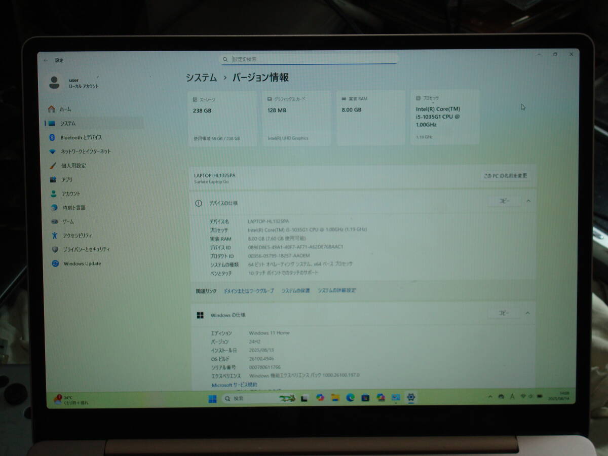Windows11 Home 64bit システムは最新の24H2になっています。