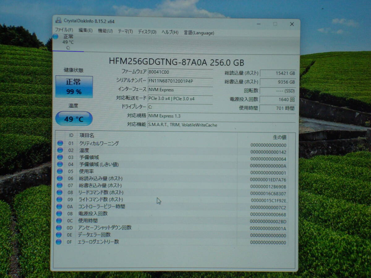 SSD 256GB  起動回数1640回 累積使用時間 701時間