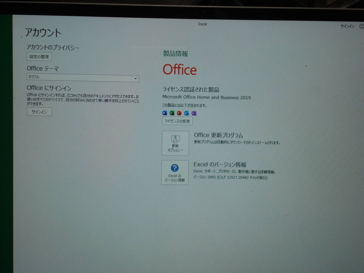 Microsoft Office Home & Business 2019インストール済み、認証済み