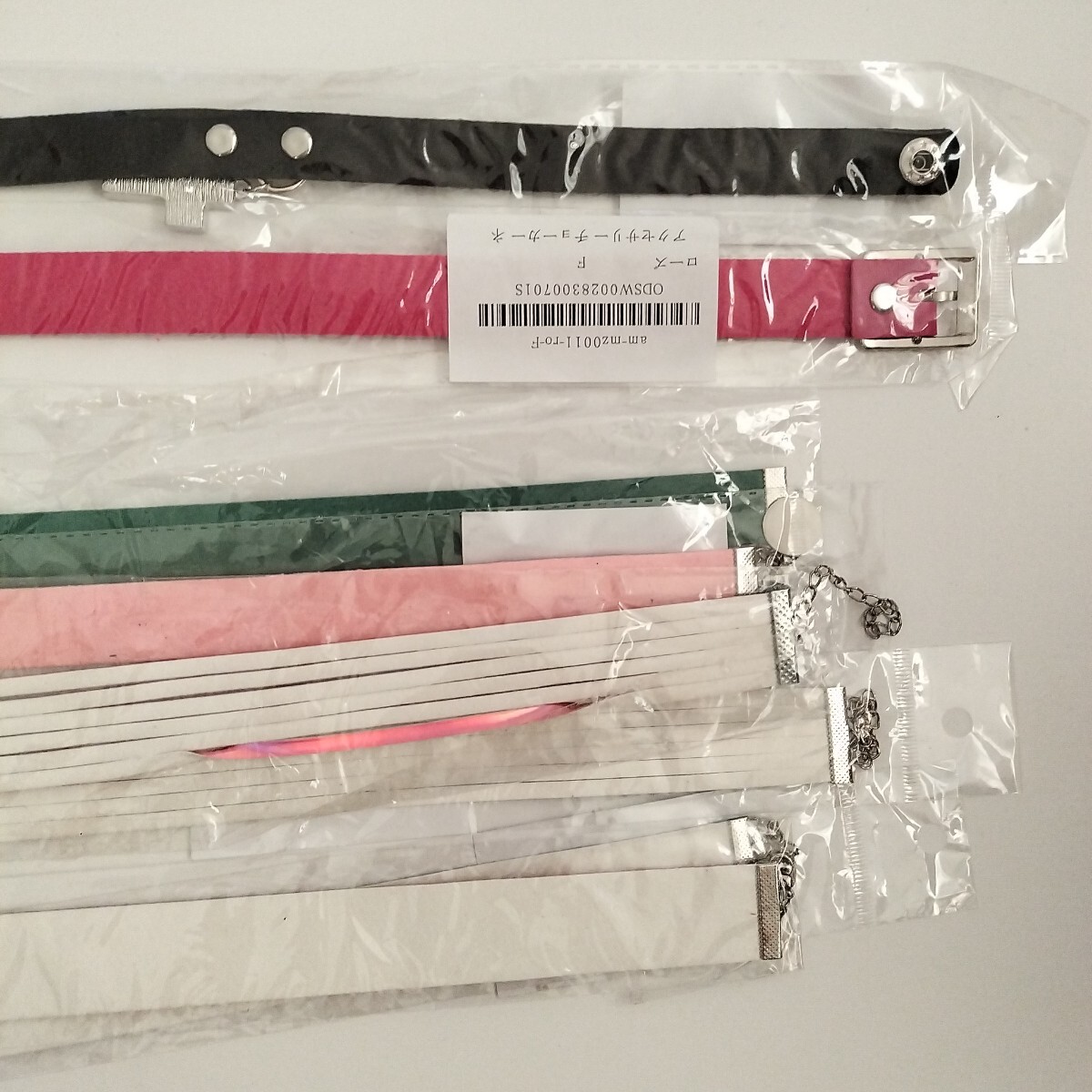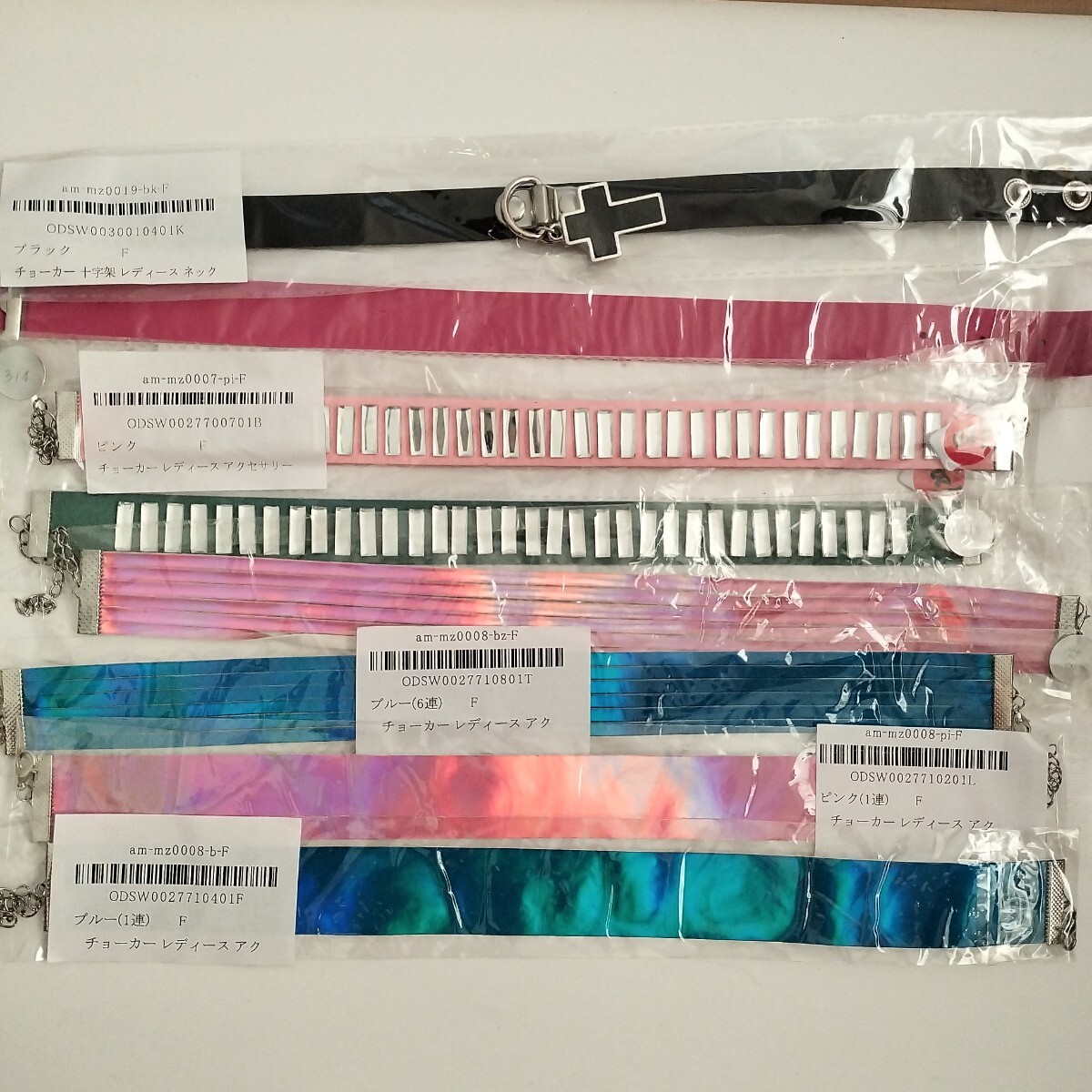 新品 処分品 8点セット チョーカー レザー 首輪 クロス 十字架 黒 ピンク 水色 レディース アクセサリー ②