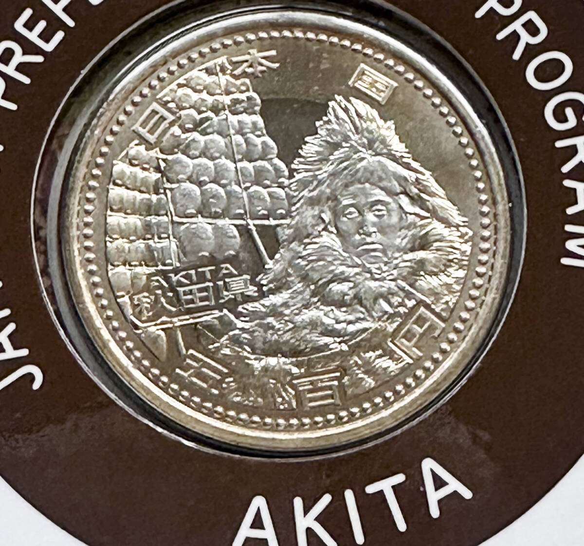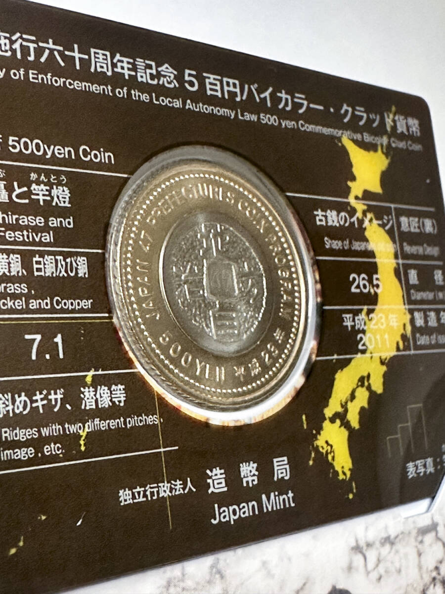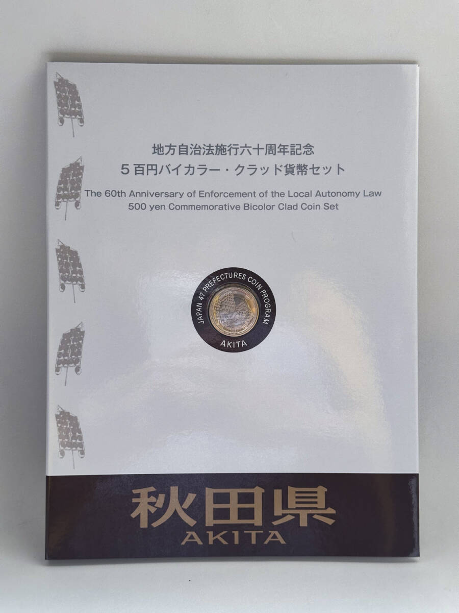 秋田県 地方自治法施行60周年記念  5百円バイカラー・クラッド貨幣セット B 切手シート付き 記念貨幣(#KB0136)