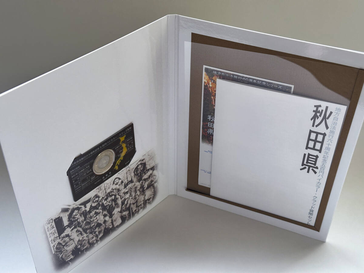 秋田県 地方自治法施行60周年記念  5百円バイカラー・クラッド貨幣セット B 切手シート付き 記念貨幣(#KB0136)