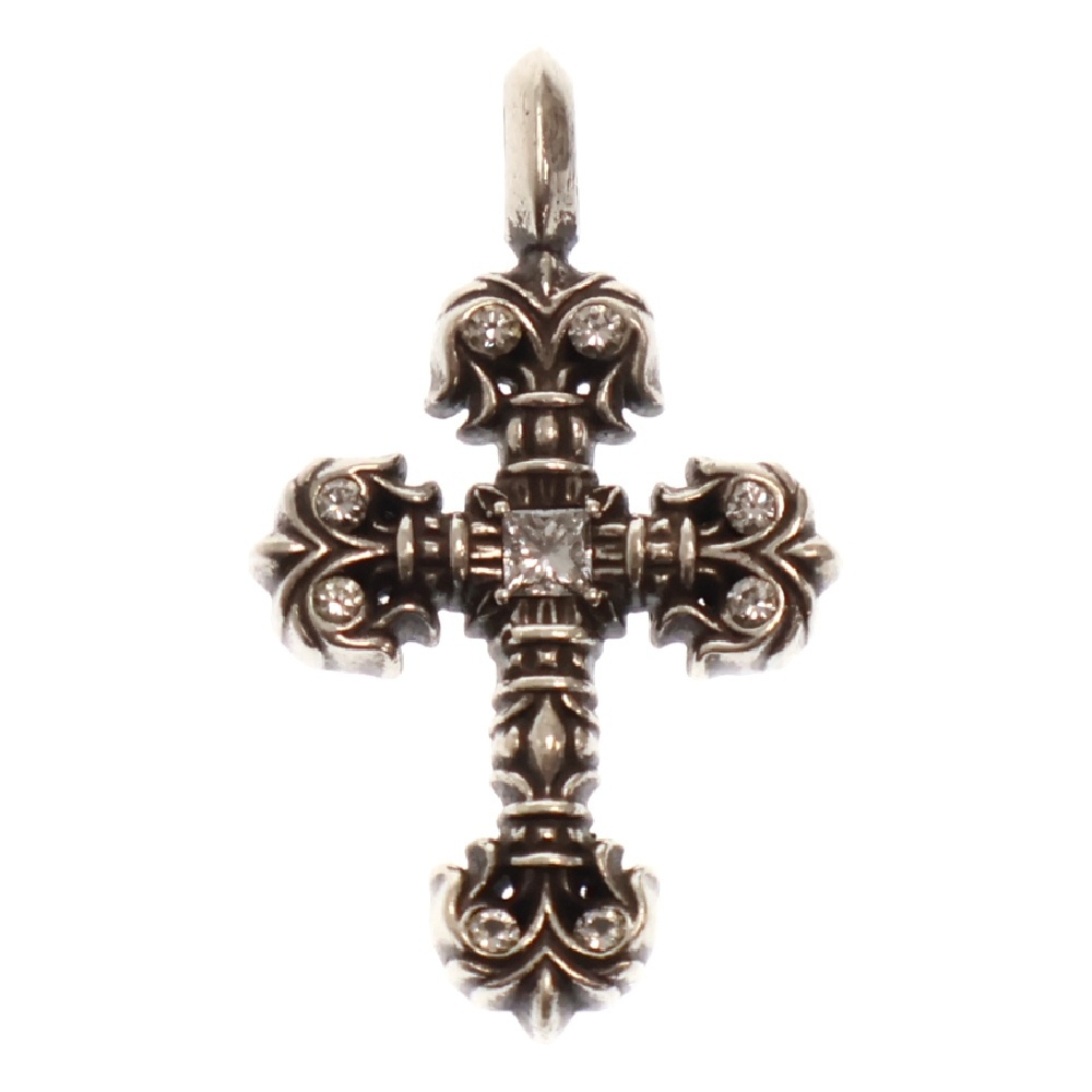 CHROME HEARTS クロムハーツ CHARM FILIGREE TINY P DMND タイニーフィリグリークロス PAVEダイヤ チャーム シルバーネックレストップ