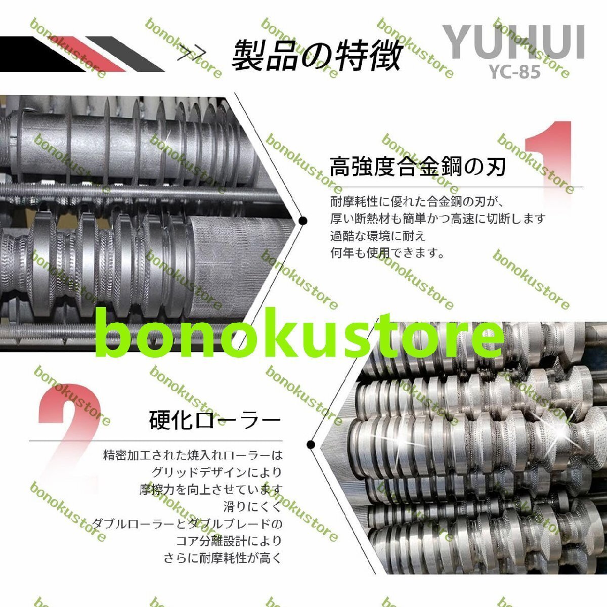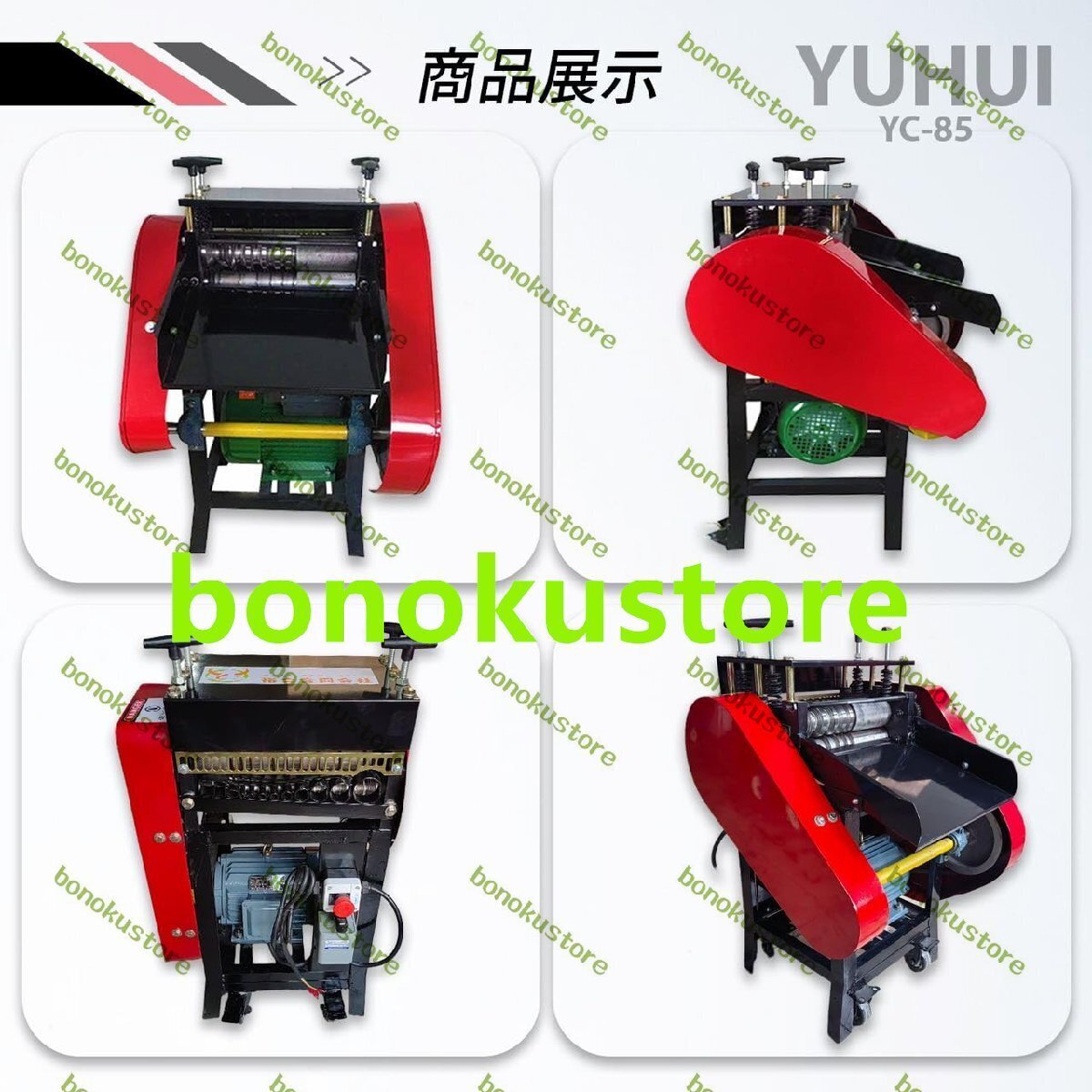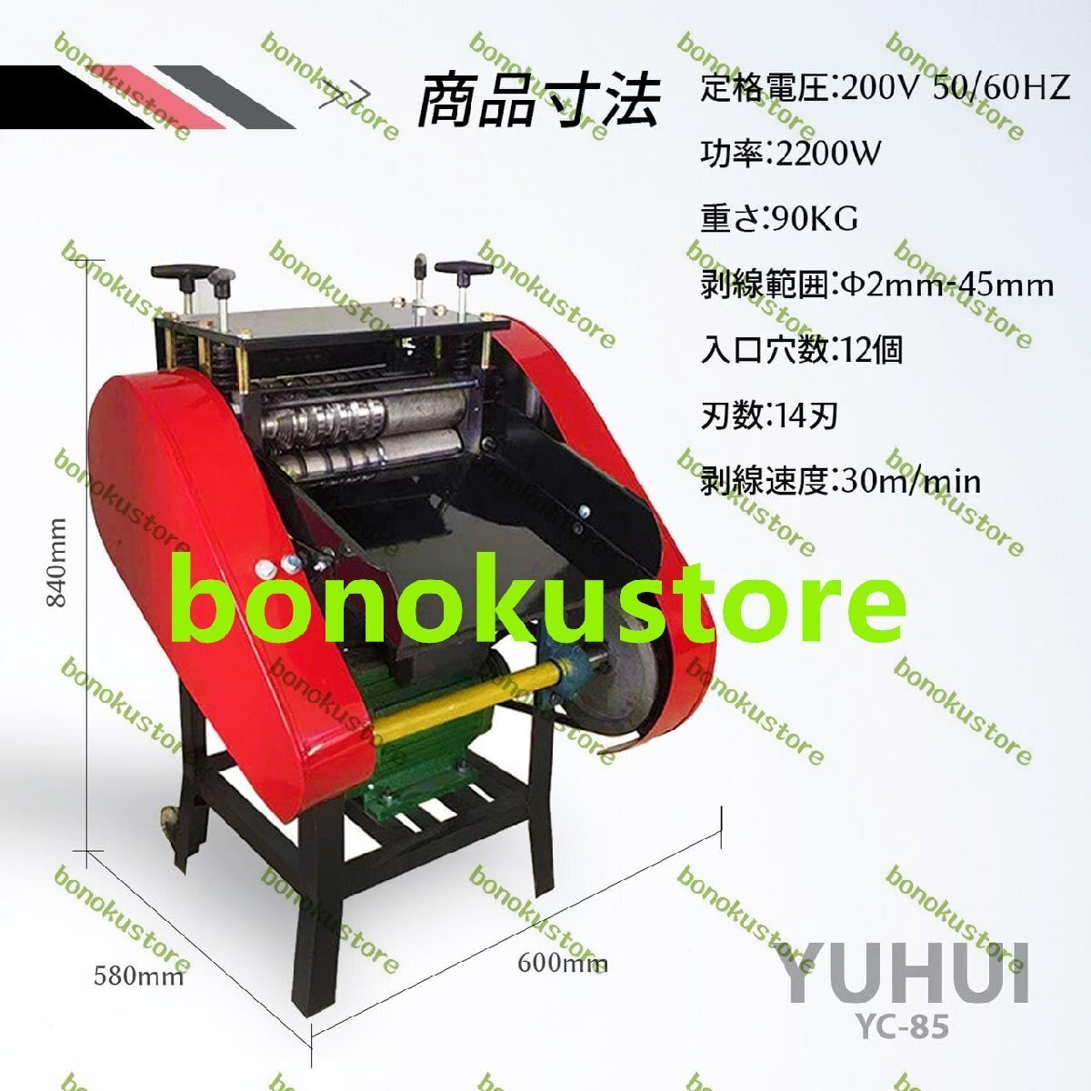 定格電圧:200V 50/60HZ 2200W サイズ:幅600 長さ580 高さ840 重さ:90KG 対応電線:直径2mm?45mm 刃数:上下14刃 処理スピード:30m/min