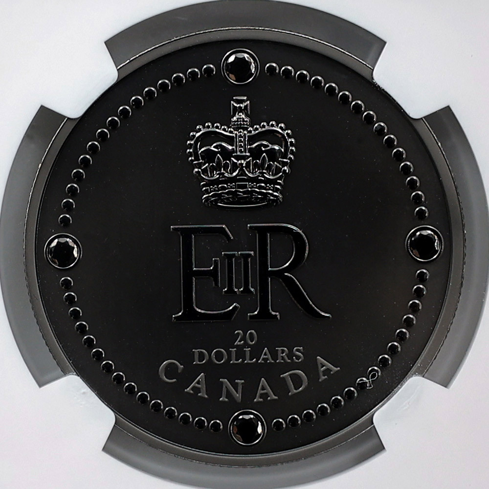 2022 カナダ エリザベス2世 ロイヤル・サイファ 20カナダドル 銀貨 ロジウムメッキ仕上げ 1オンス NGC PF 70 MATTE FR 最高鑑定 元箱付