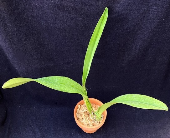 詳細は不明ですが、恐らく実生からセレクトされた個体ではと推測されています。大型になるタイプで、バルブは細目の個体です。