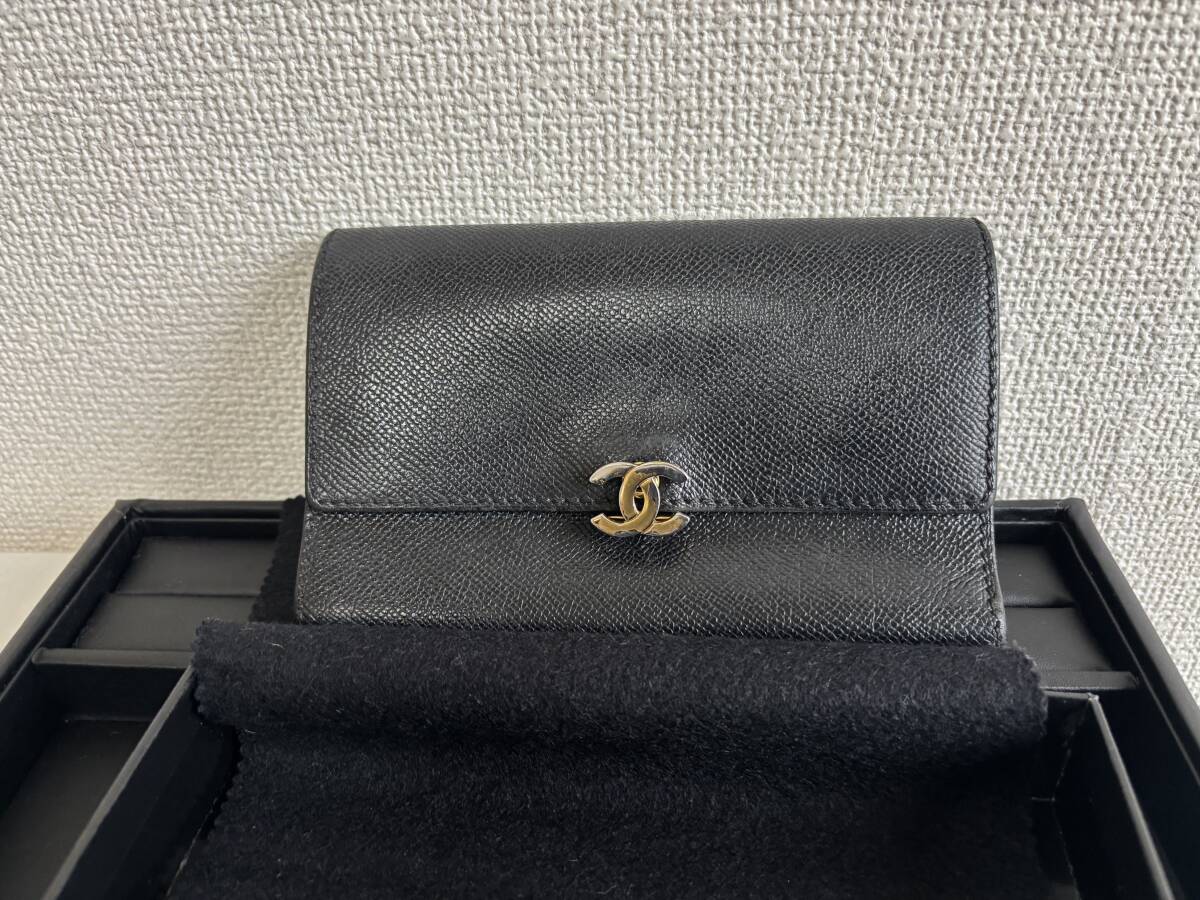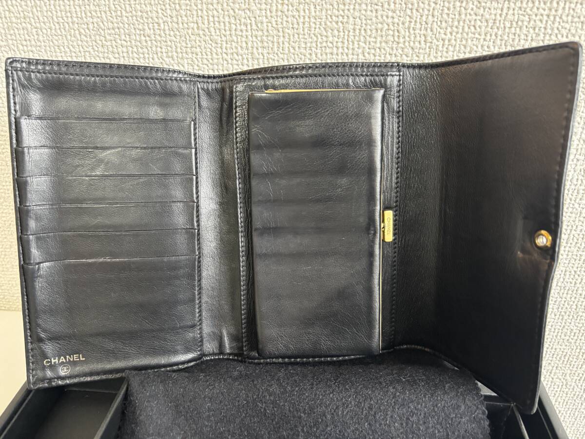 CHANEL 長財布 キャビアスキン ブラック ゴールド金具 シリアル6番台 箱付き ボタン壊れあり