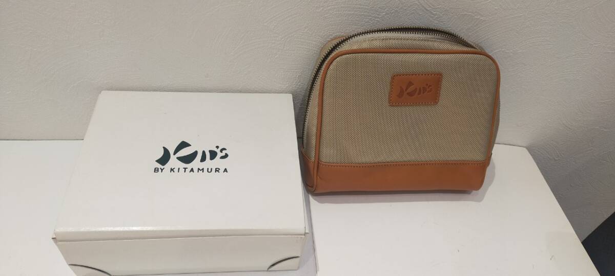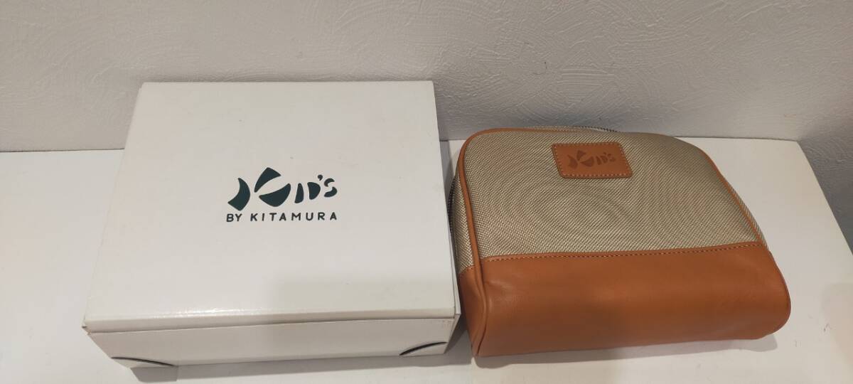 KID'S BY KITAMURA キャンバス×レザー ポーチ ベージュ×茶 箱有 中古品 キッズ バイ キタムラ 70851 | |||