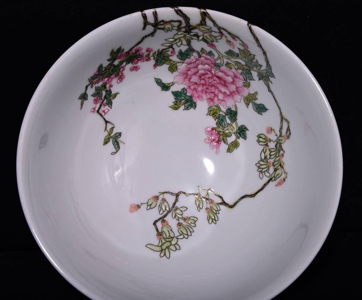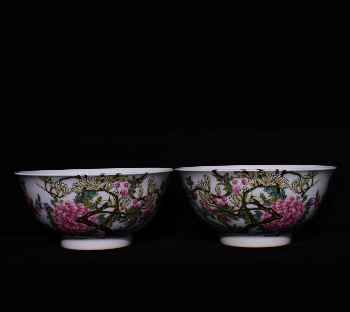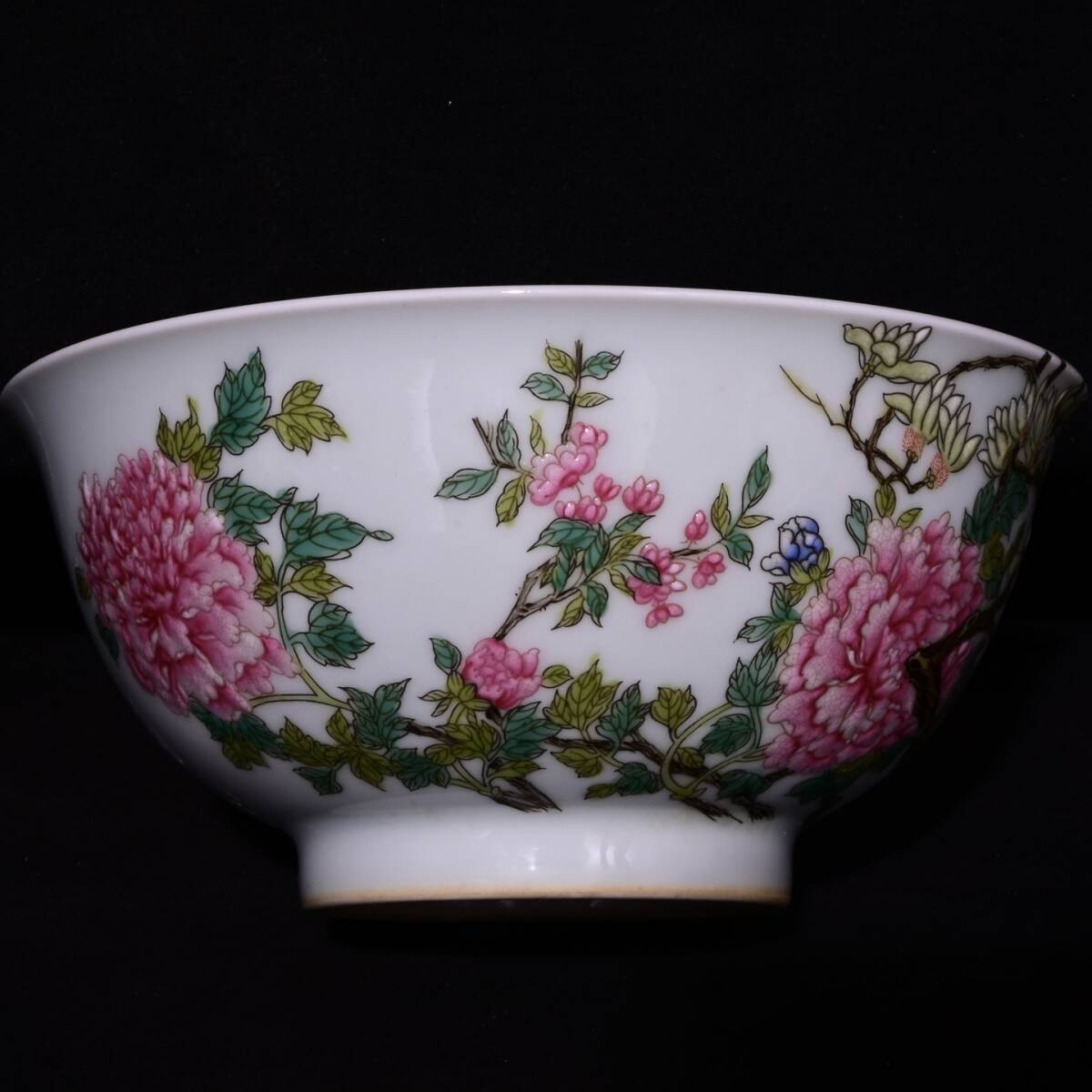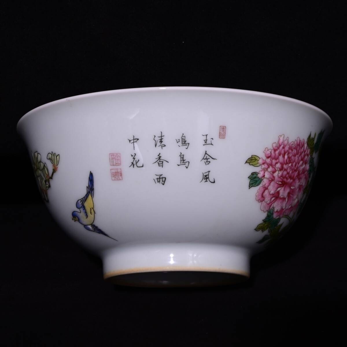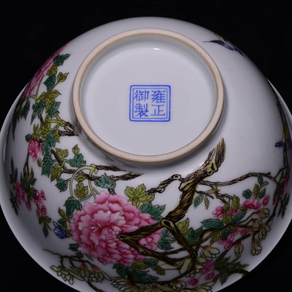 8_ZZ6536【惠】人間国宝 中国骨董 陶芸 磁器【清雍正御製款琺瑯彩花鳥紋碗】工芸品 施釉陶 青花磁 陶芸 置物 收藏品