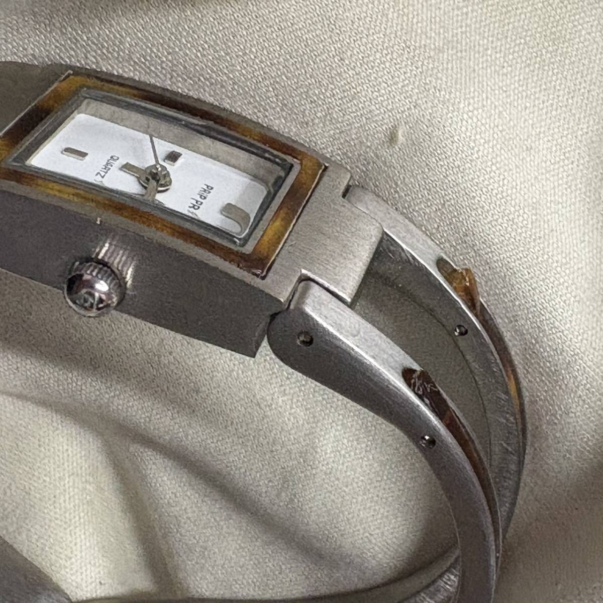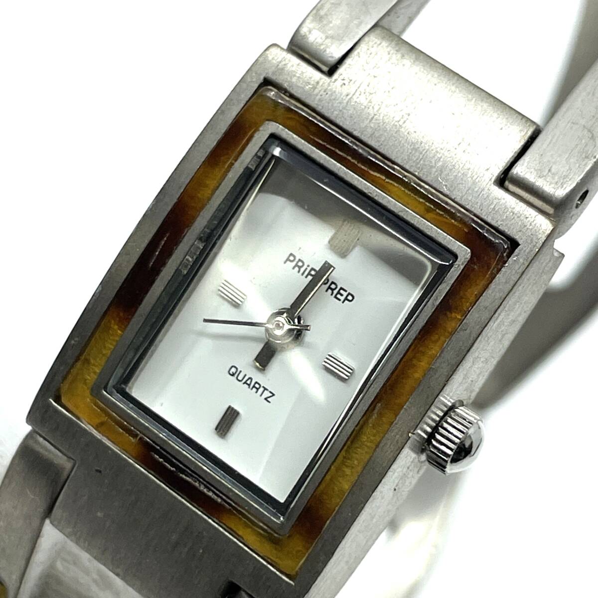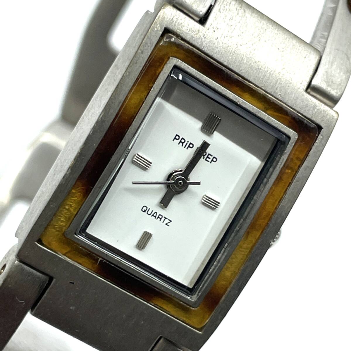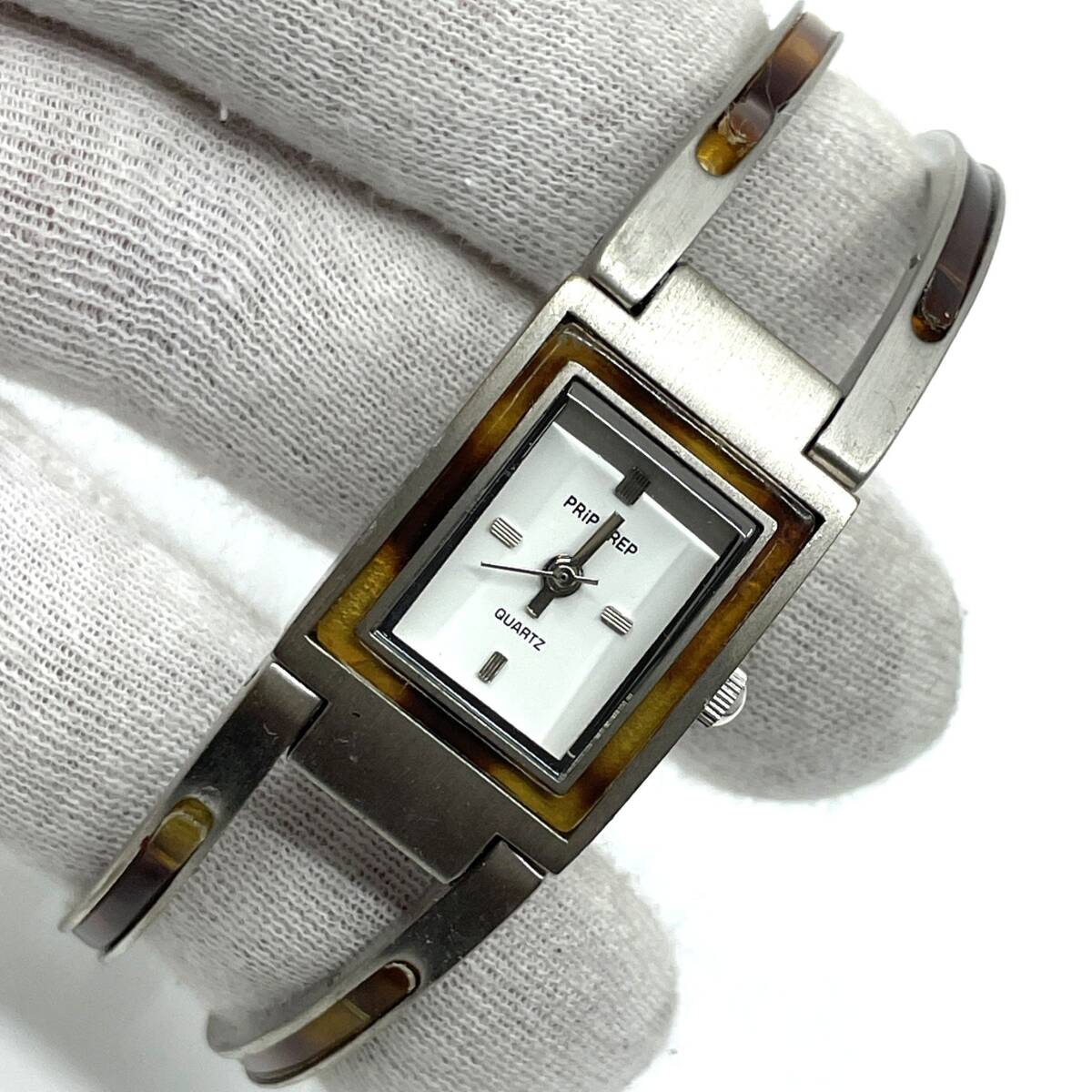 【動作未確認】PRiP PREP クォーツ 腕時計 白文字盤 3針 スクエア べっ甲風 バングルウォッチ レディース RS-08