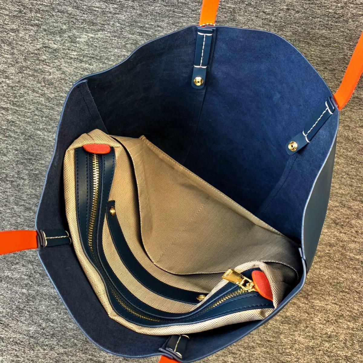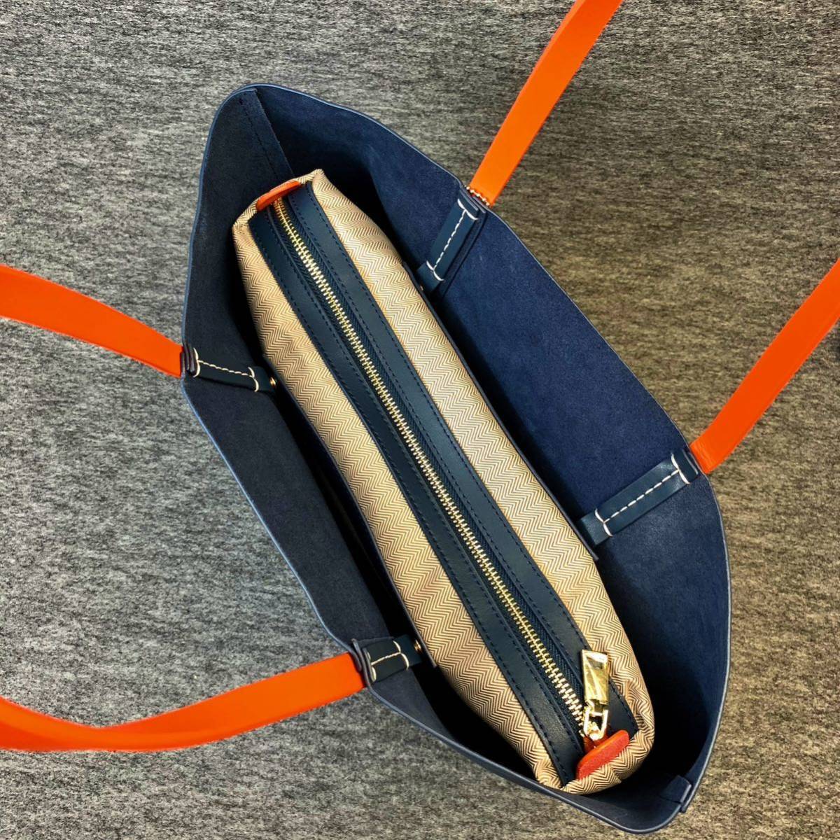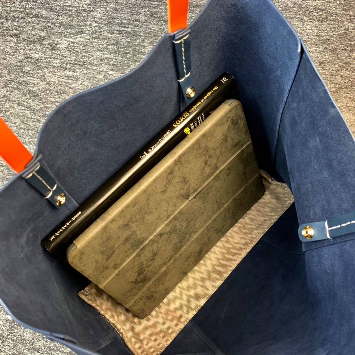 たっぷりの書類を詰め込みたいビジネスシーンや、休日のちょっとした旅行にも好相性な頼れる大容量の本革シンプルトートです。