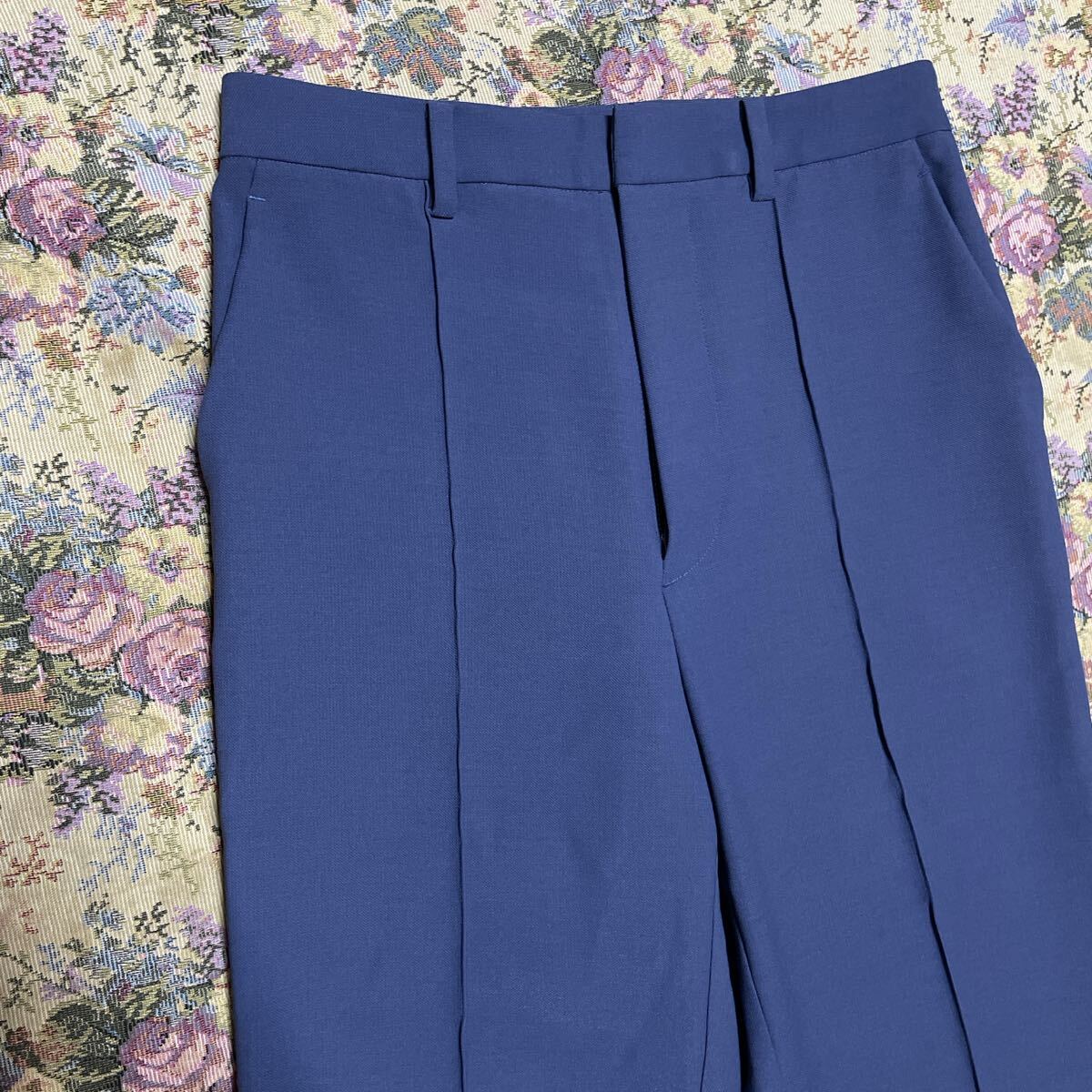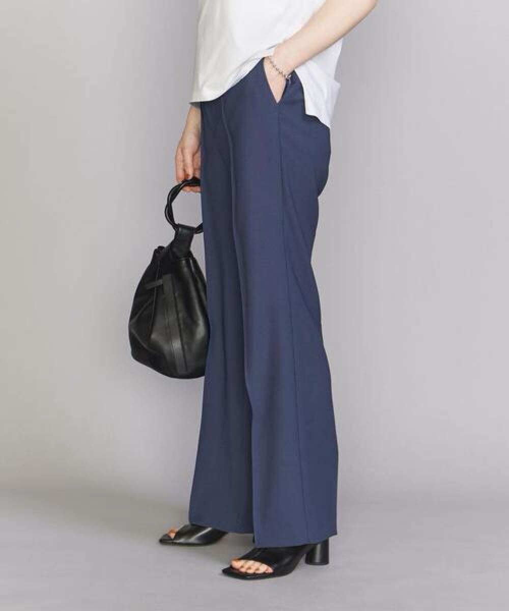 センターにピンタックを入れることで、スタイルよくすっきりと見えるように仕上げた、フレアストレートパンツ。