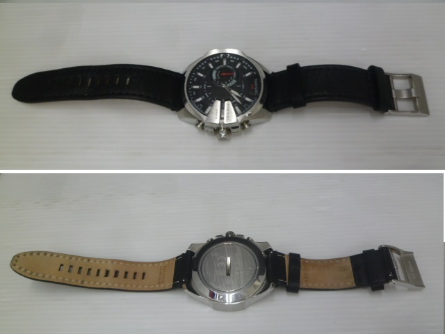 『中古品』DIESEL/ディーゼル メガチーフハイブリッドスマートウォッチ DZT-1010 レザーベルト メンズ腕時計 クォーツ/黒文字盤 | ||