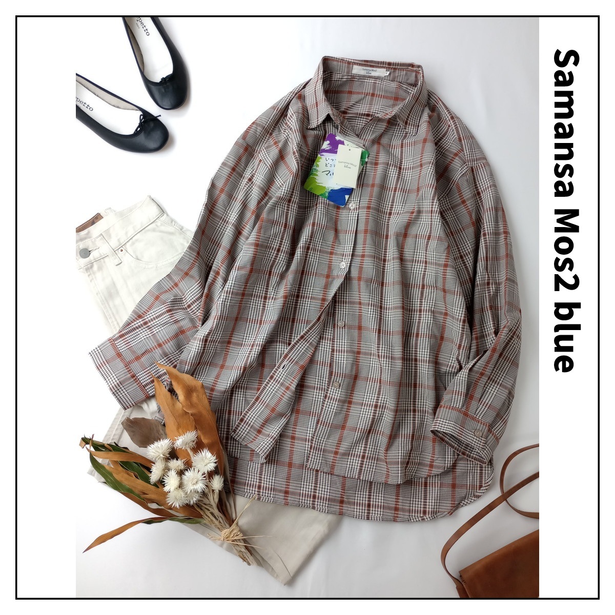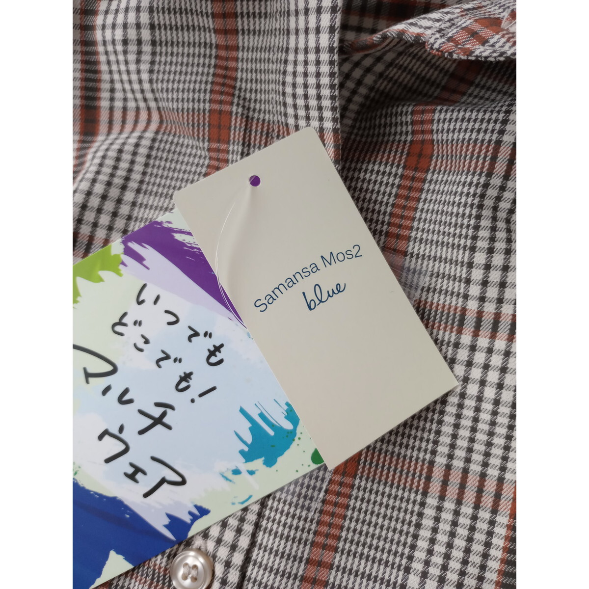 新品 Samansa Mos2 blue サマンサモスモスブルー「一枚あると重宝する♪」チェック柄 マルチスタイル シャツ 長袖 L ベージュ(3M+7828)