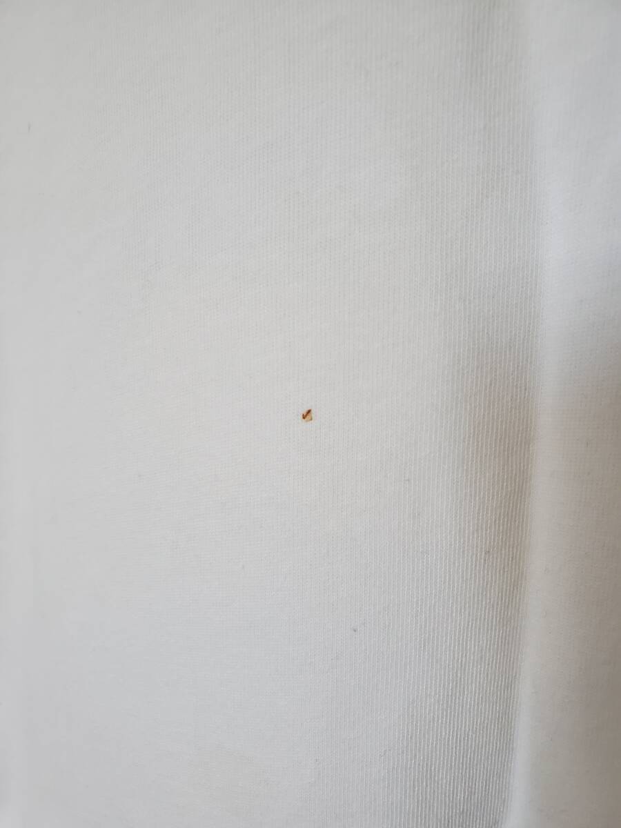 ・むねあたりにシミや襟に汚れがあり、羽毛だちもあります。サイズは、平置きで肩幅45センチ、身幅55センチ、着丈70センチになります。