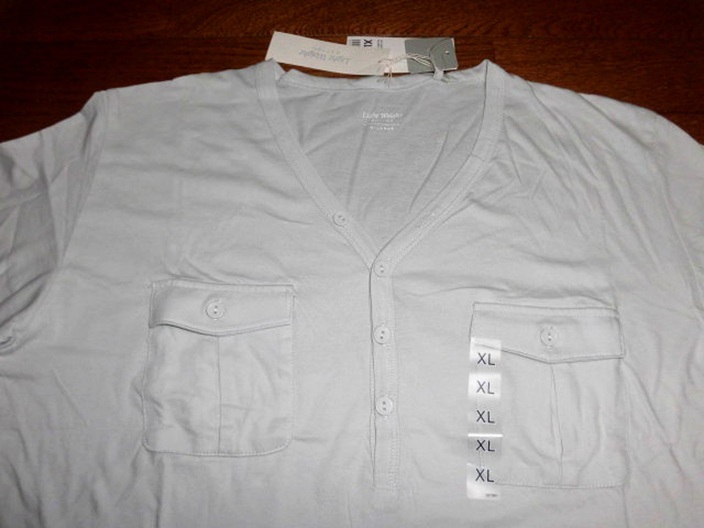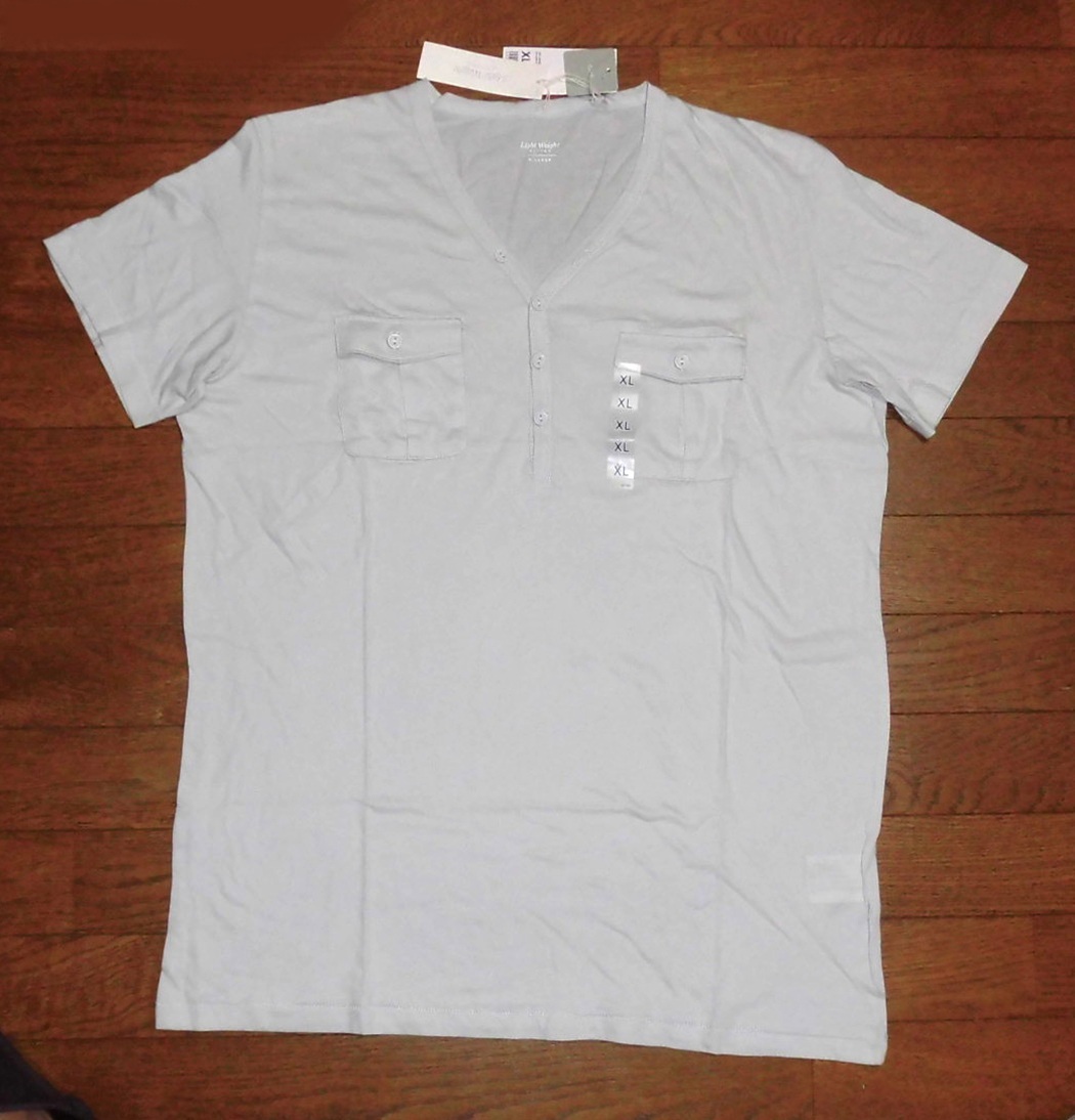 UNIQLO ユニクロ ライトコットン 半袖 デザイン ヘンリーネック シャツ ヘンリーネックT 胸ポケ付 L-GRY XL 紙タグ付 未使用品