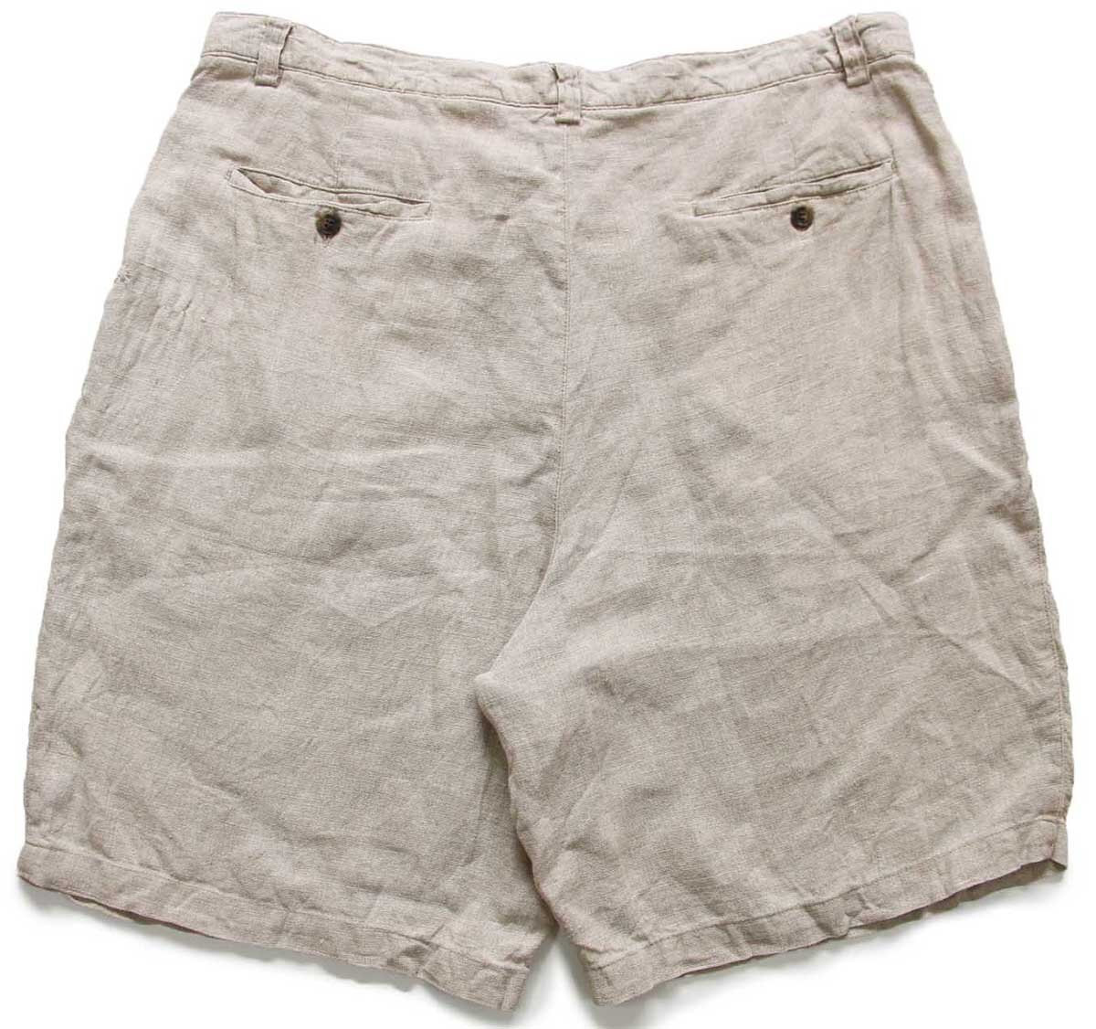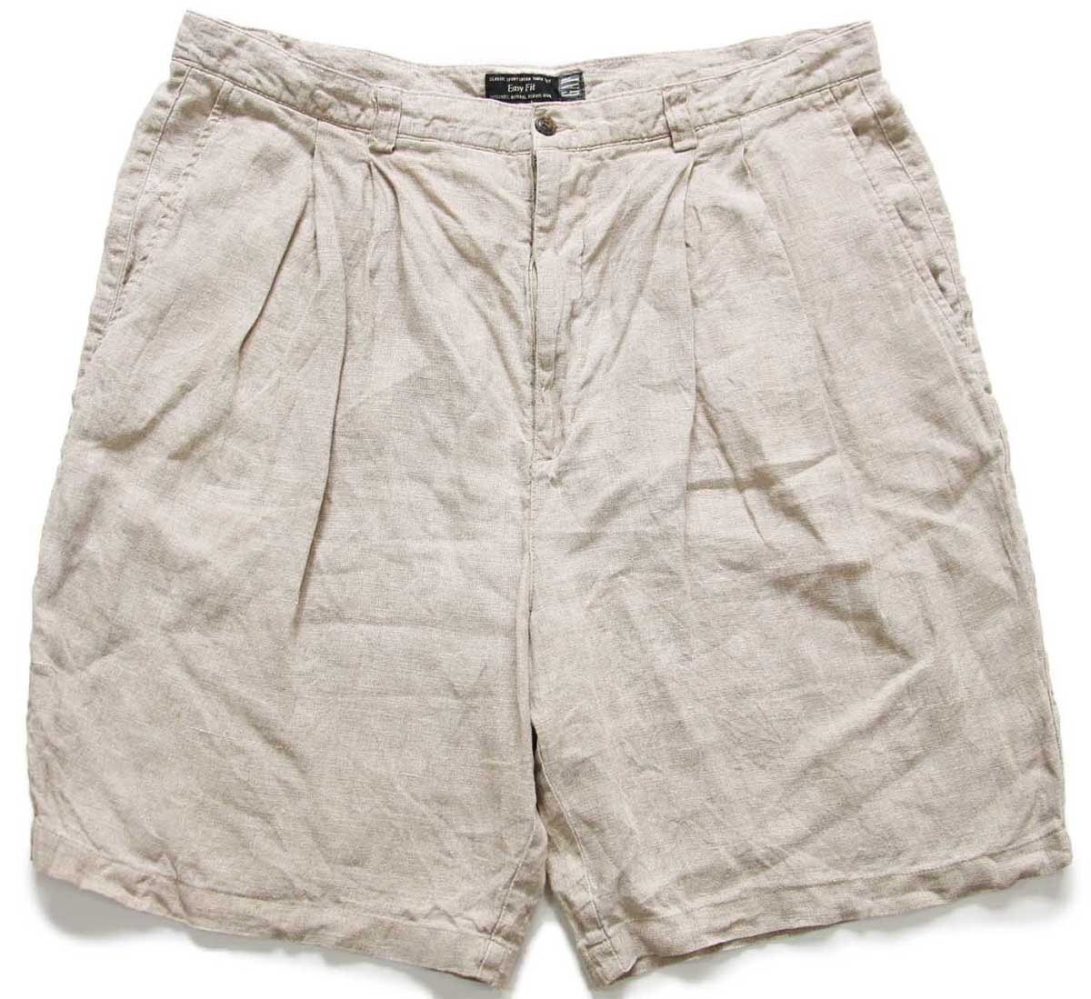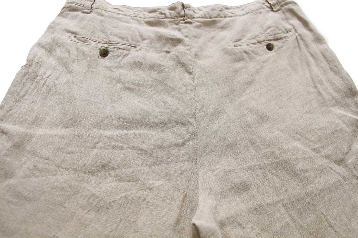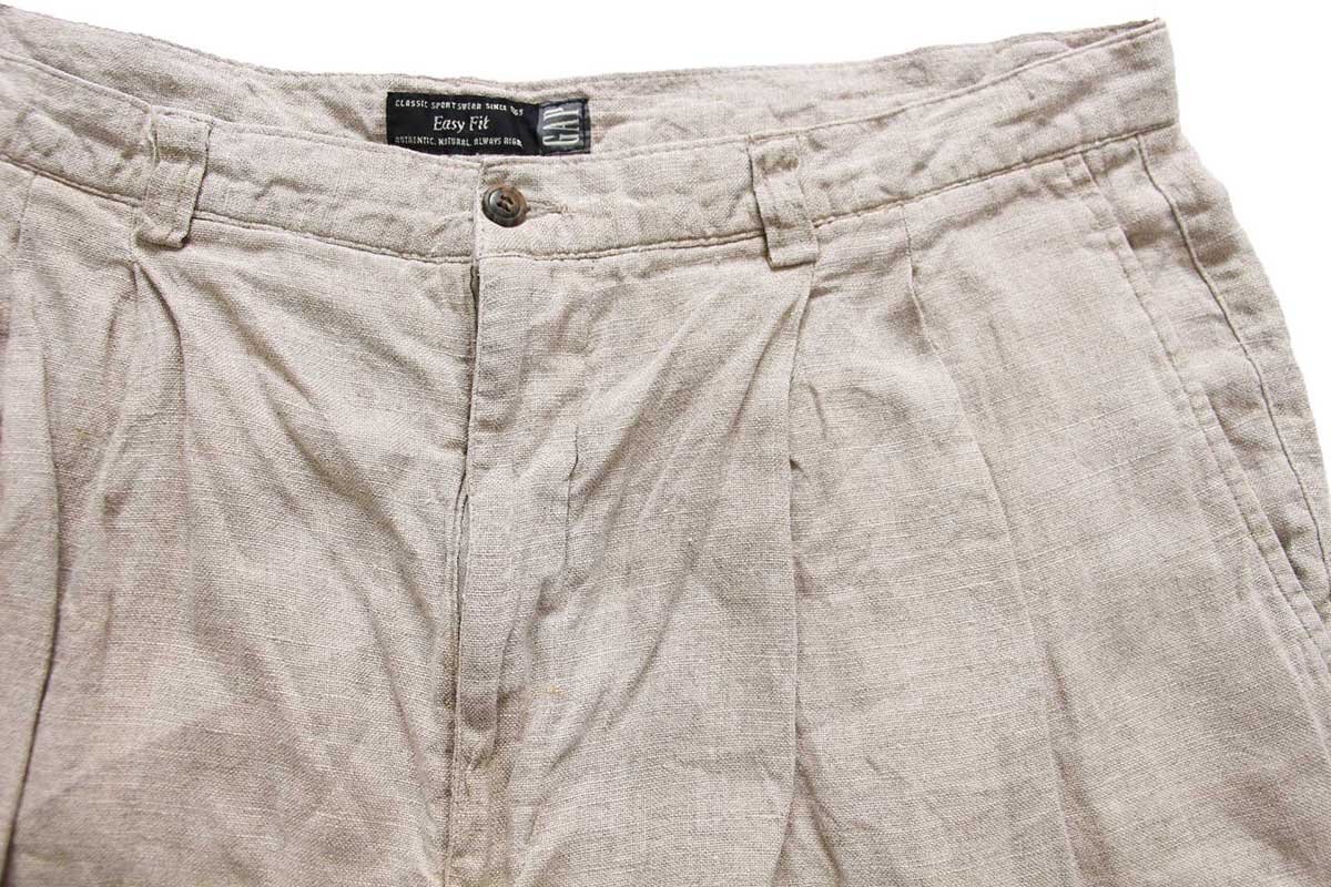 ★90s GAPギャップ Easy Fit ツータック リネン ショートパンツ グレーベージュ 40★ショーツ ハーフ オールド ワイド ビッグサイズ