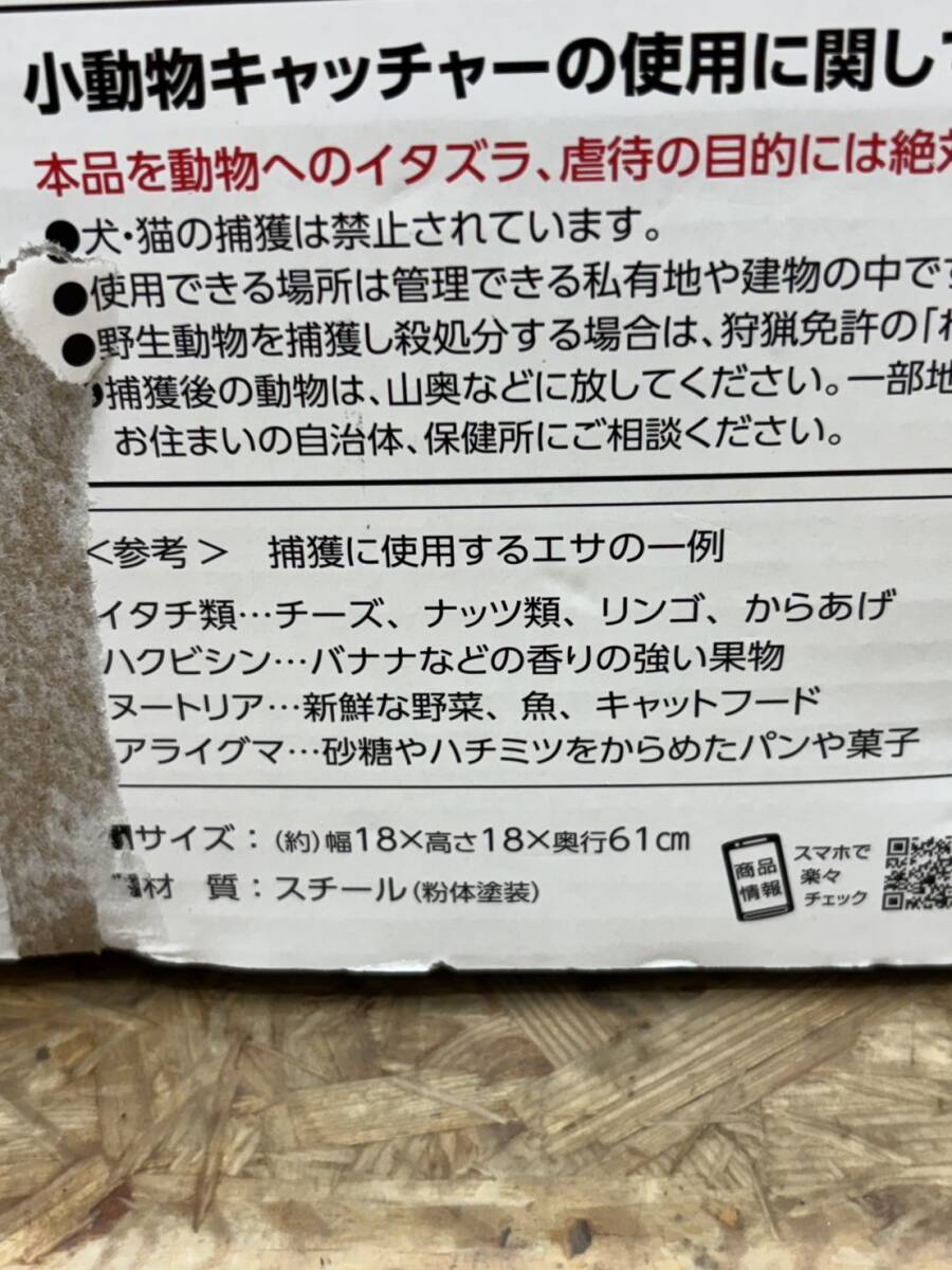 [商品名] | 送料無料h7827 コメリ 捕獲カゴ アニマルキャッチャー 小 小動物キャッチャー 動物捕獲器 箱わな 未使用 | |||||||||
