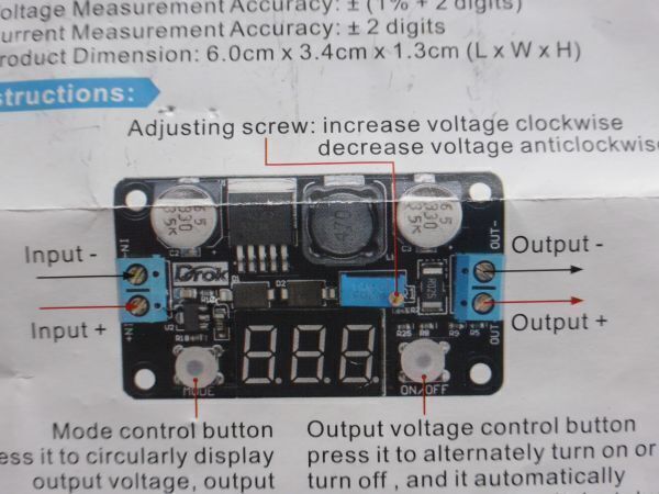 アナログ制御:ポテンショメータの上のネジを時計回りまたは反時計回りに調整して、出力電圧を増減します。