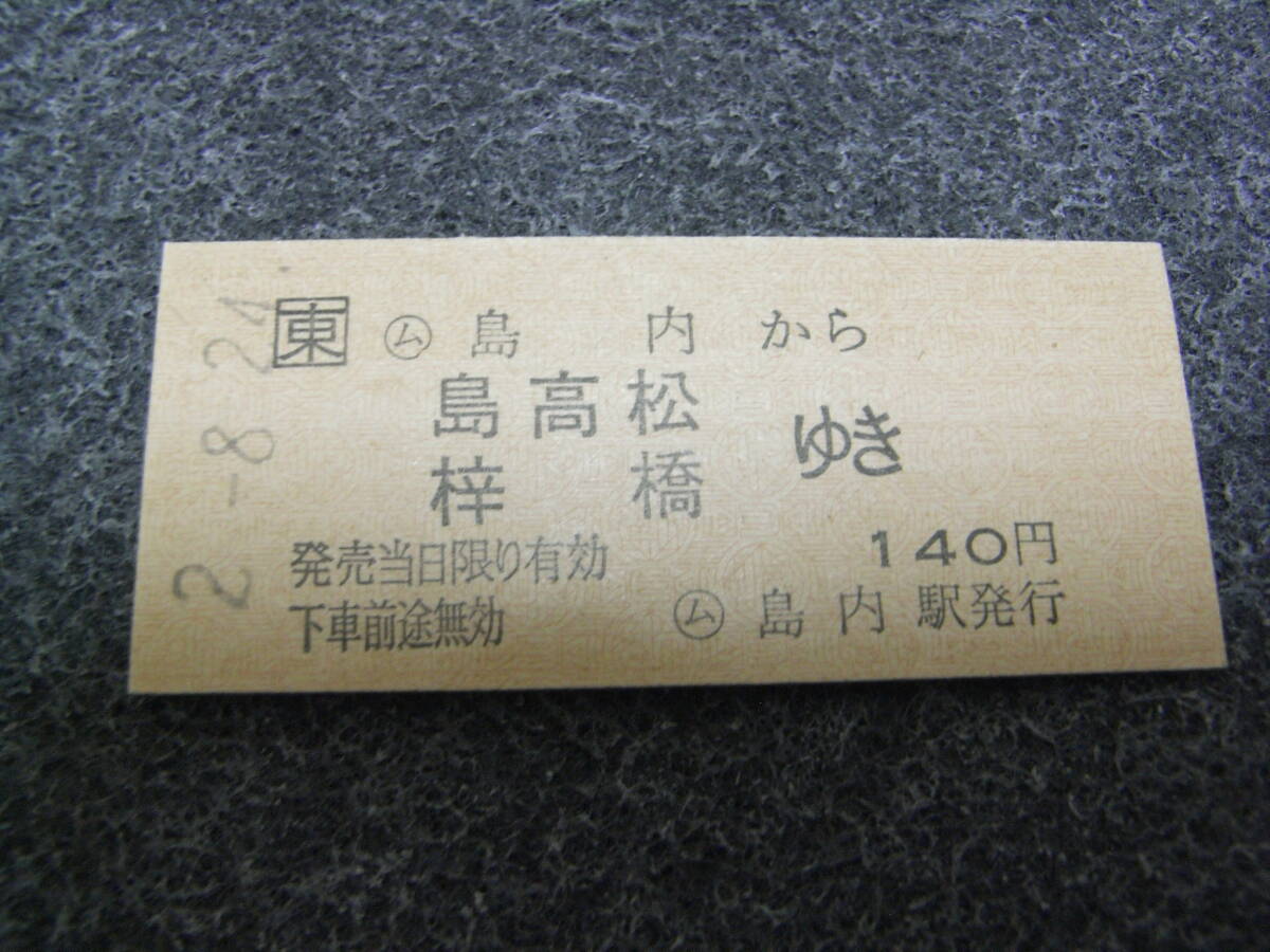 大糸線 ム島内から島高松 梓橋ゆき 140円 平成2年8月24日 ム島内駅発行 JR東日本