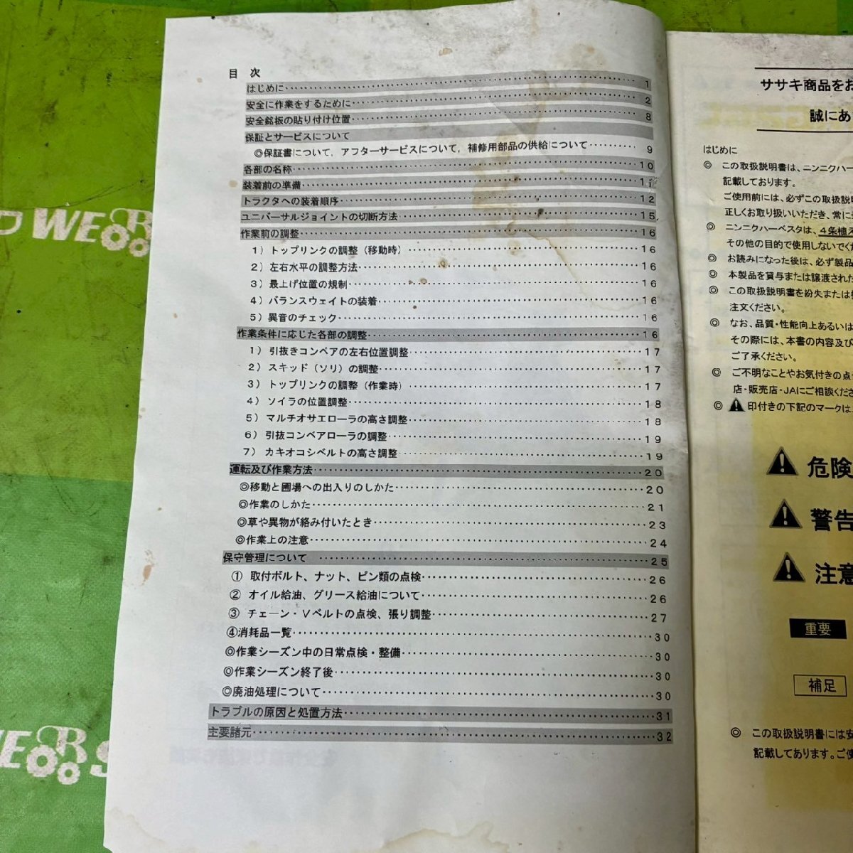 商品名 *ササキハーベスター 取扱説明書