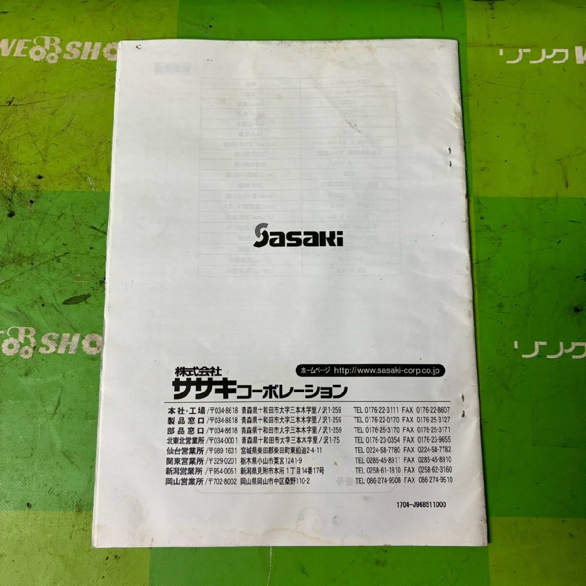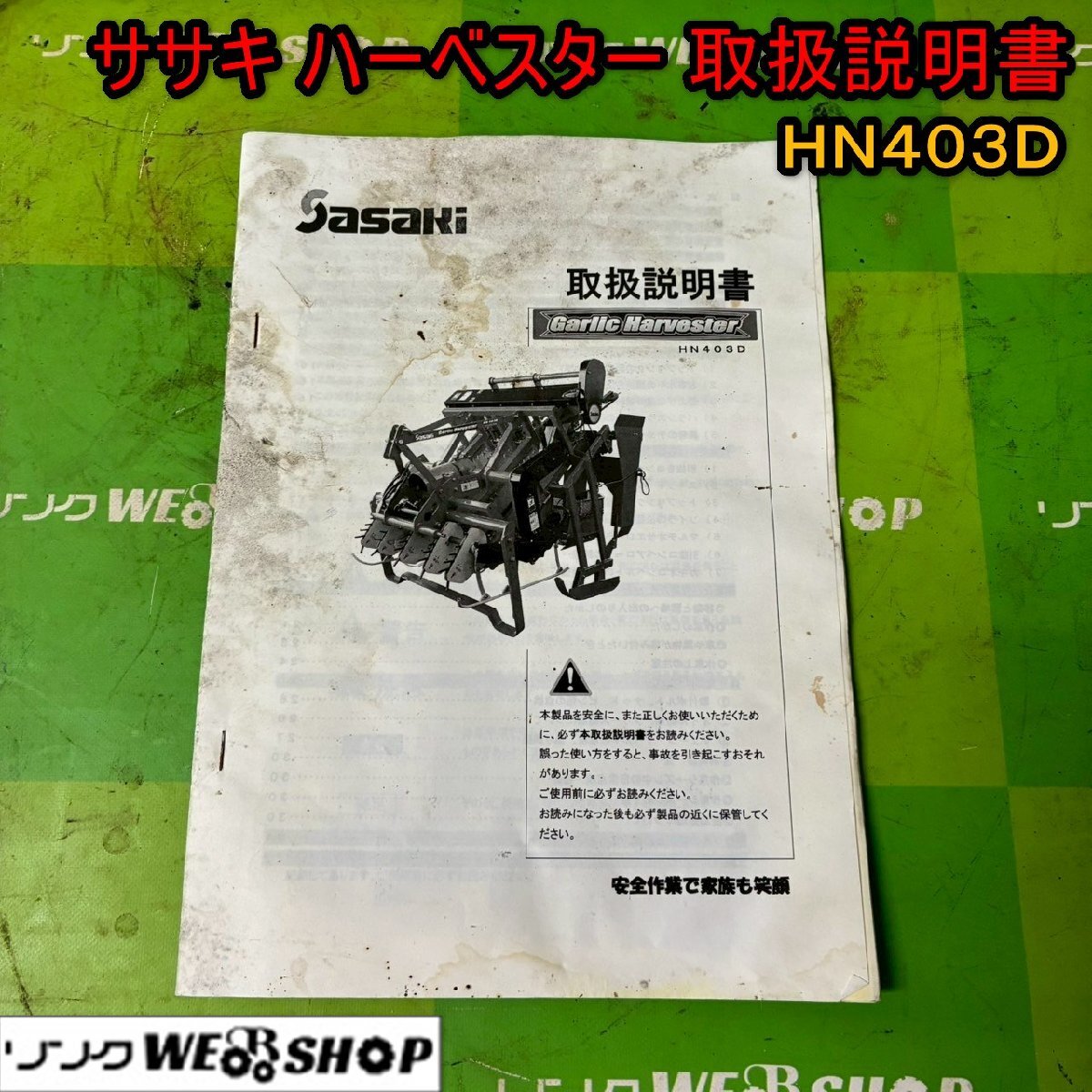 青森 七戸店 ササキハーベスター 取扱説明書 HN403D トリセツ 取説 東北 中古品
