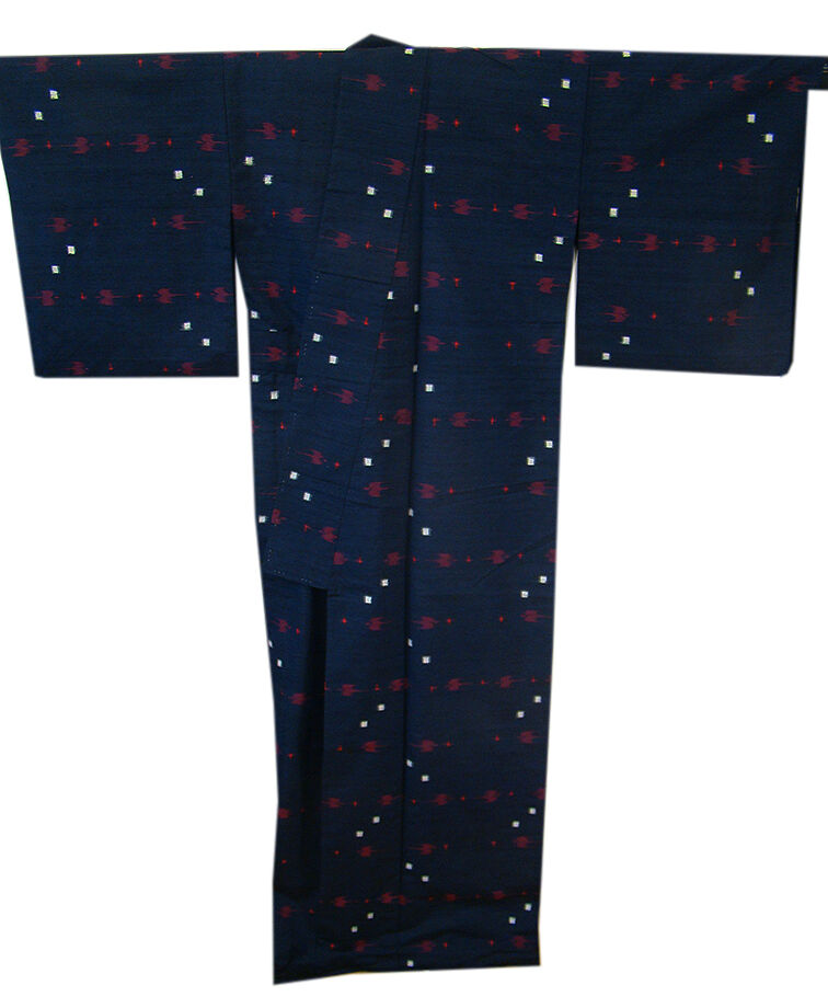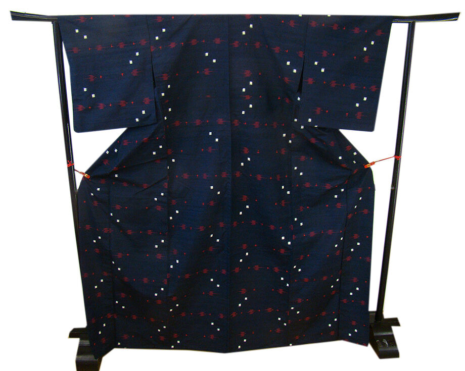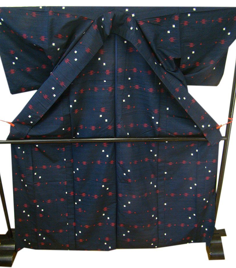 | 商品説明 | こちらのお品は「単衣」ですので5月、6月、9月にお召頂ければと思います。 着物には、大きく分けて「袷(あわせ)の着物」と「単衣(ひとえ)の着物」と「夏着物」があります。 反物(表地)を着物に仕立てるときに、裏地類をつけるものを袷の着物、 つけないものを単衣の着物と呼び、胴裏や八掛といった裏地がつかない一枚ものの着物です。 また裏地がないため、座る時などにヒップのラインが目立たないよう、 居敷当て(いしきあて)の生地をつけることもあります。 居敷当ては付いておりません。 しなやかでさらりとして手触り良く着心地良い涼やかな風合いの十日町紬地、 渋い濃紺色地に赤、白色の織柄が洒落感高い着物姿を演出しております。 |