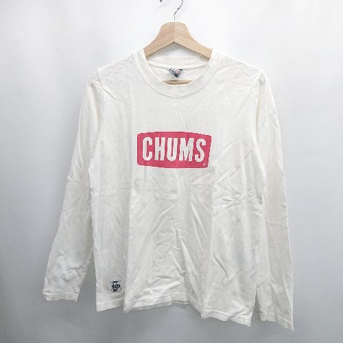 ◇ Θ CHUMS チャムス ロゴプリント 長袖 Tシャツ カットソー サイズM ホワイト レディース E
