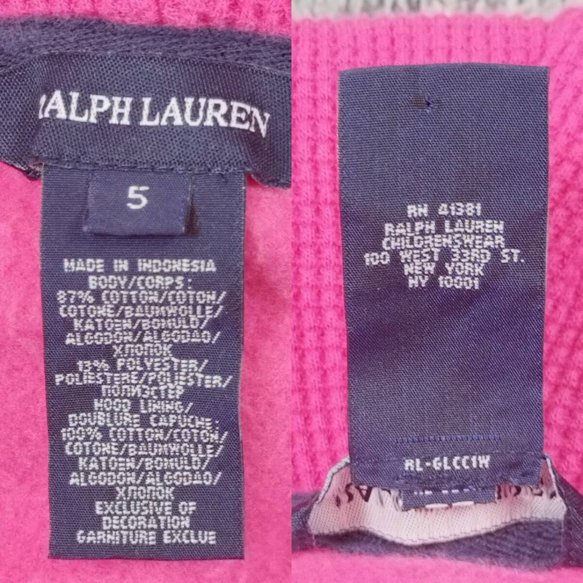 RALPH LAUREN ラルフローレン キッズ パーカー フルジップ フーディ ピンク 子供服 サイズ5 115cm ジュニアパーカー