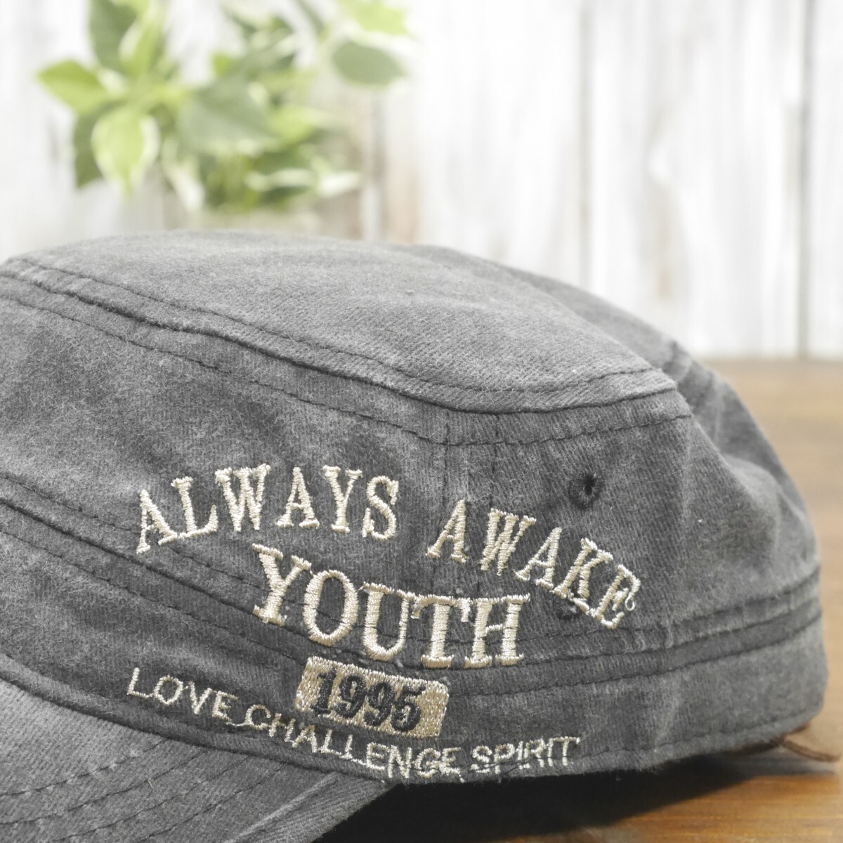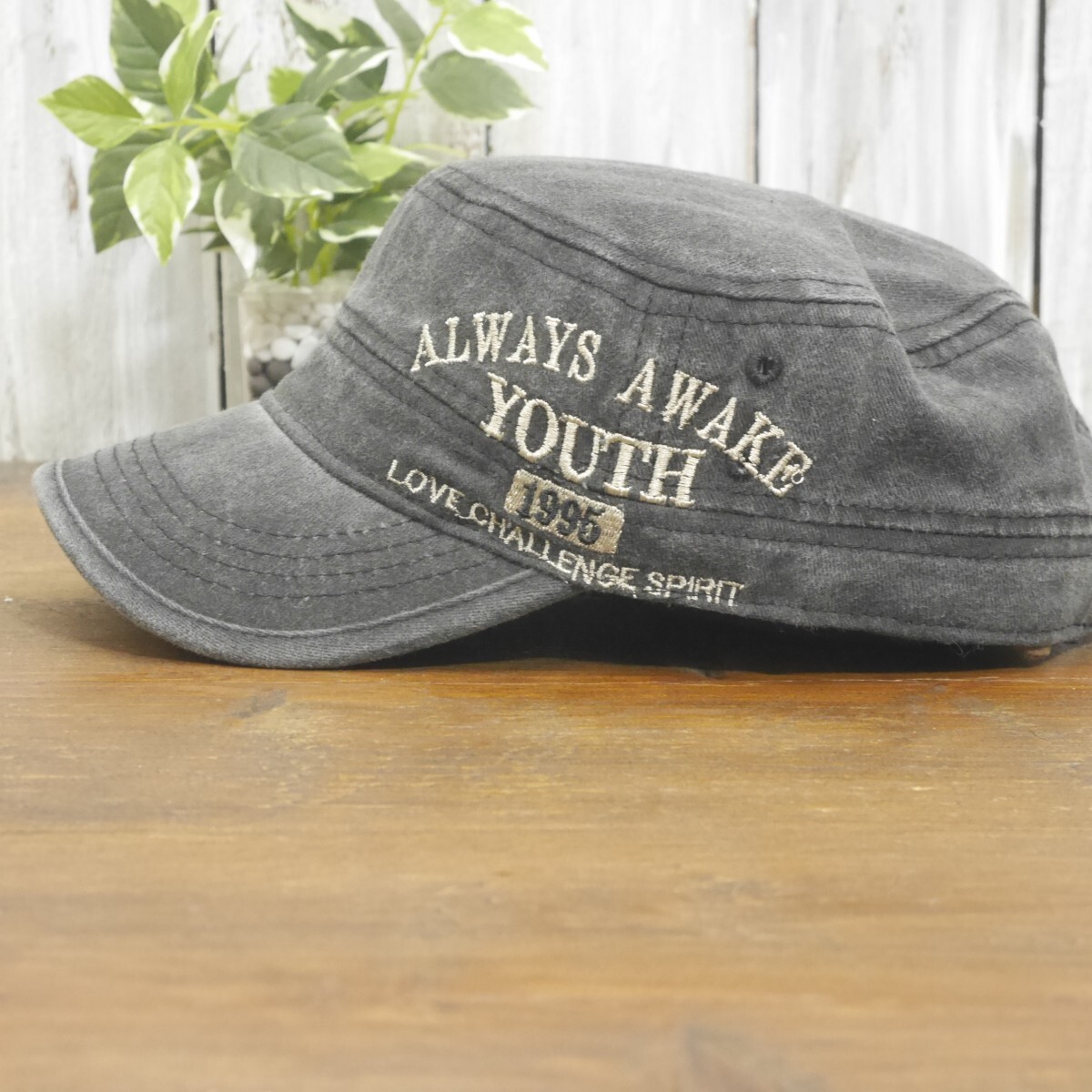 送料\450 ALWAYS AWAKE YOUTH ビンテージ ダメージ 色あせ ワークキャップ ブラック サイズ調整可能 男女OK メンズ レディース
