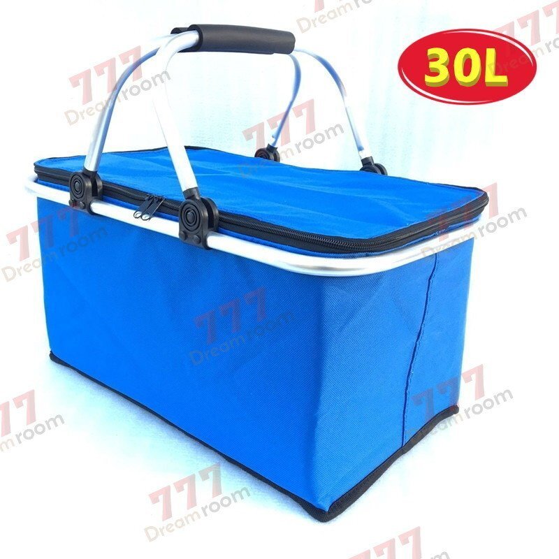 保冷・保温 機能付き 30L 折りたたみ式 エコバッグ【ブルー】大容量 バスケット 買い物かご 断熱バッグ屋外 ピクニック