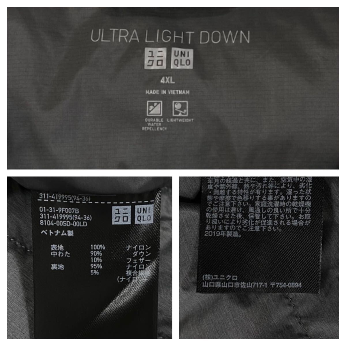 【UNIQLO(ユニクロ)ウルトラライトダウンコンパクトベスト 襟2way インナーダウン メンズ4XL グレー系 携帯用袋無し 】