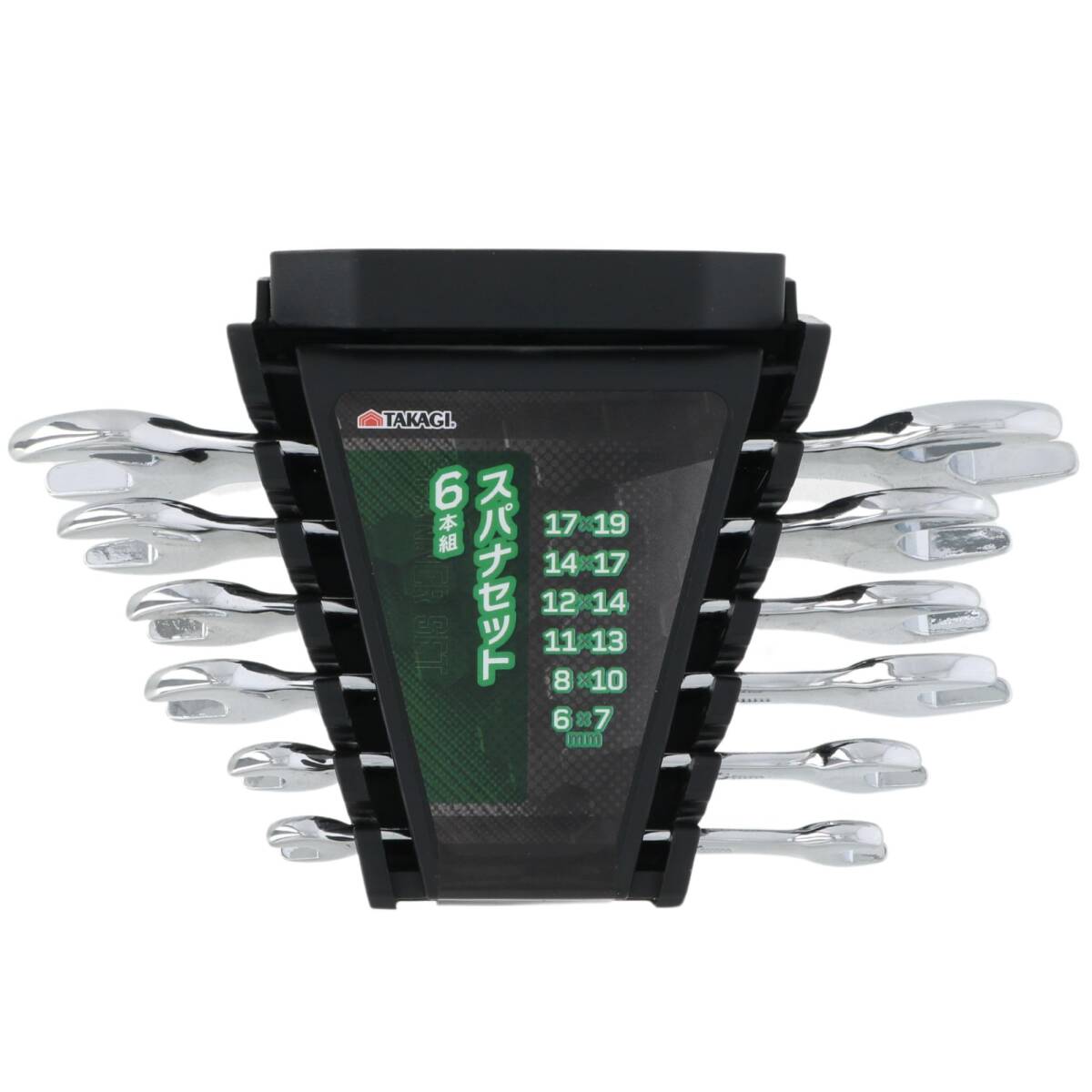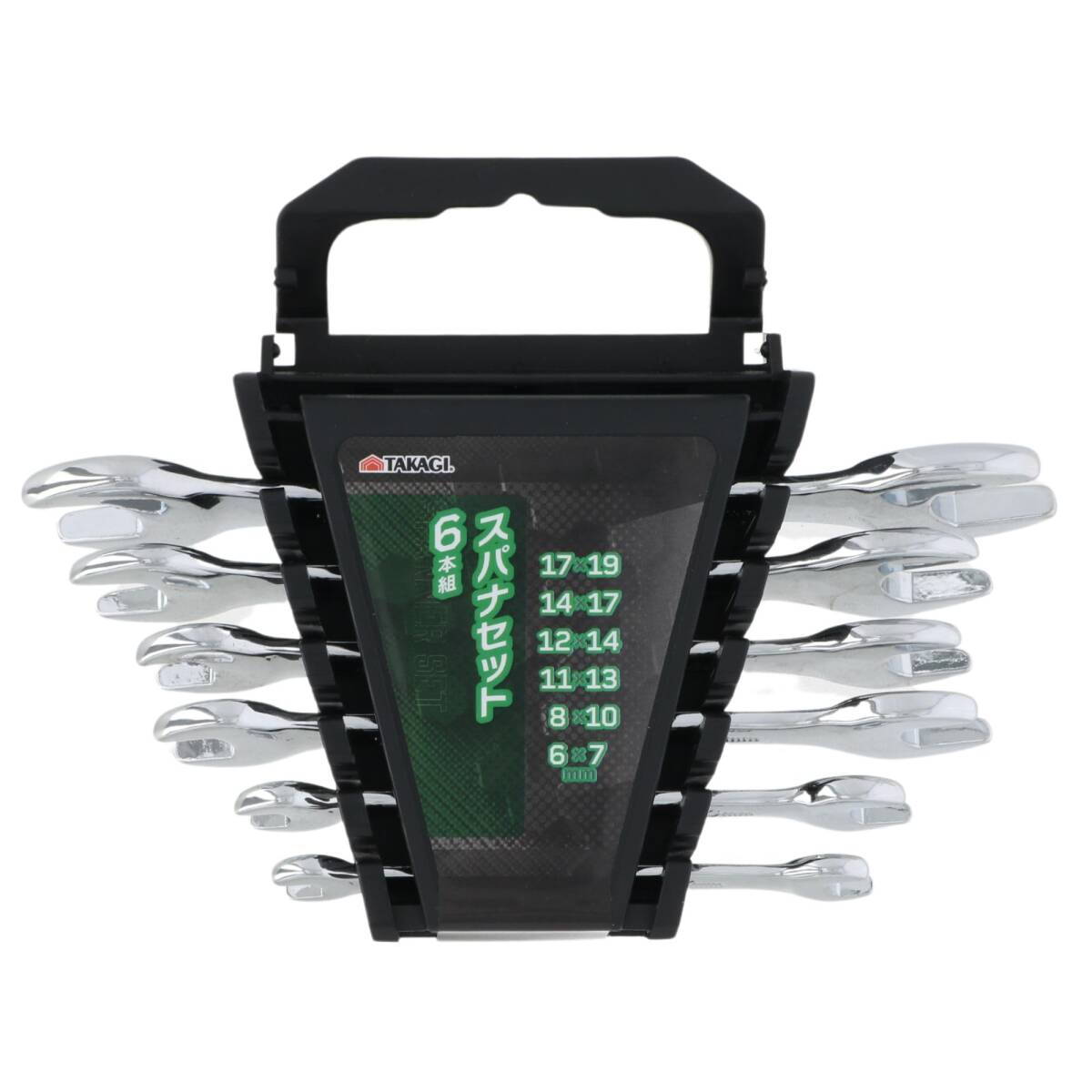 高儀(Takagi) スパナ セット ミリ 6本組 6×7mm/8×10mm/11×13mm/12×14mm/14×17mm/17×19mm ボルト ナット 締めつけ ゆるめ作業 両口スパナ 工具 収納に便利 ホルダー付き 高儀 たかぎ