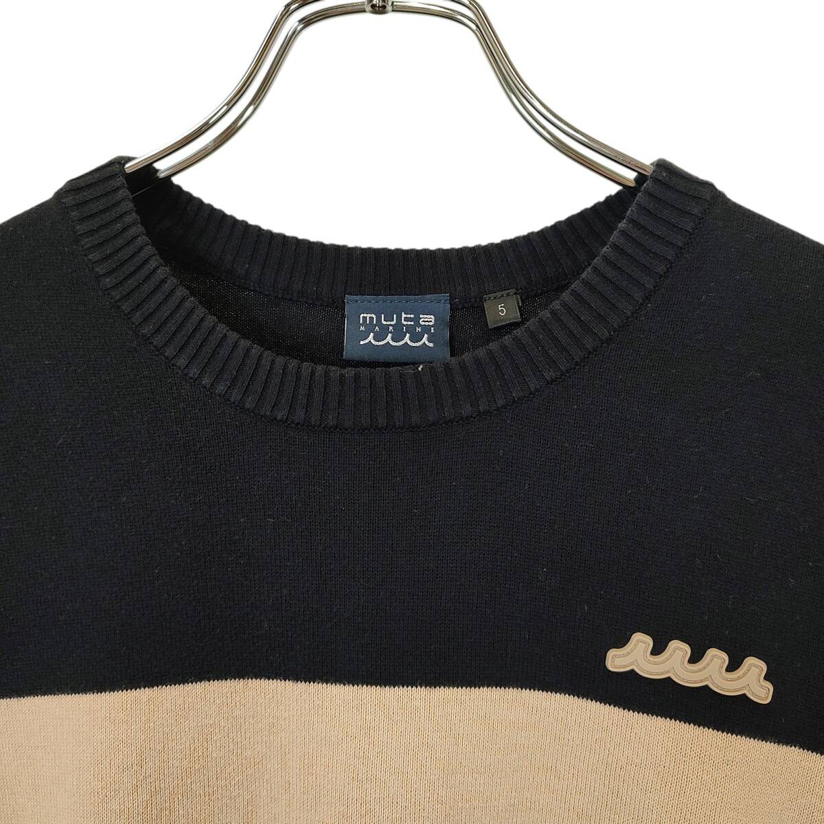 muta MARINE ムータ マリン ボーダー 長袖 クルーネック ニット セーター 212 503406 M ブラック/ベージュ