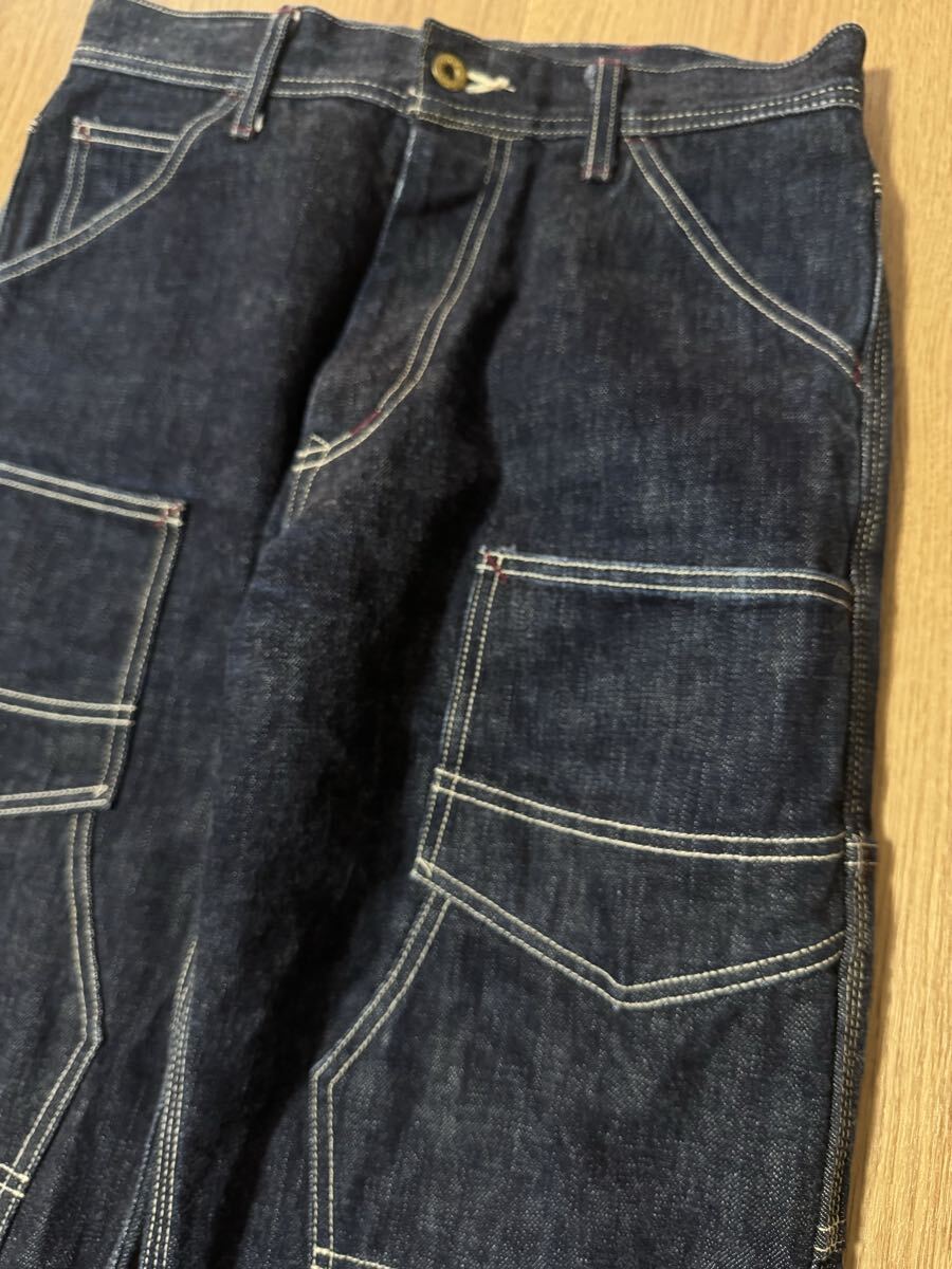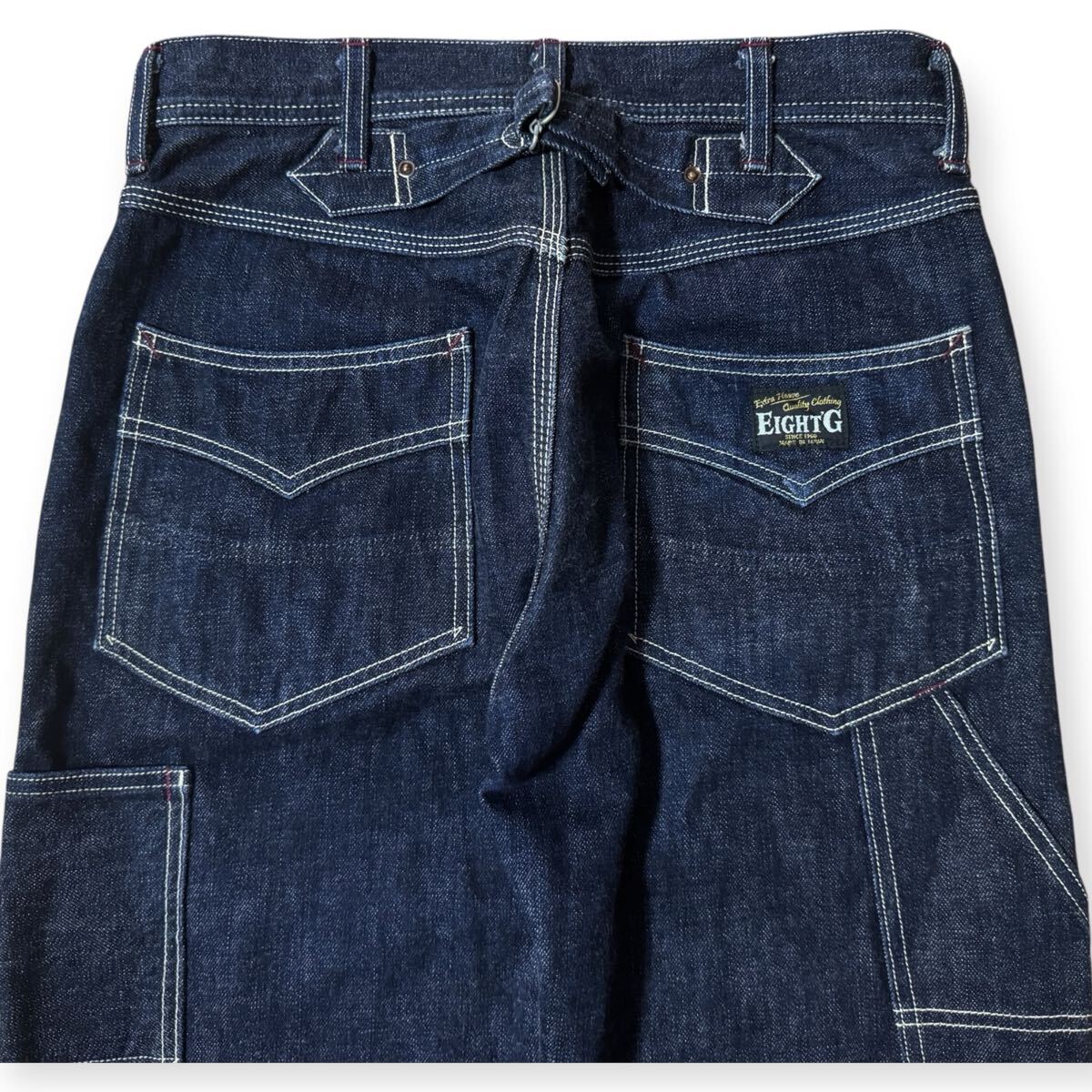 濃紺 EIGHT-G ダブルニー 13.5oz デニム ワークパンツ w31 L34 右綾デニム シンチバック ペインターパンツ 日本製