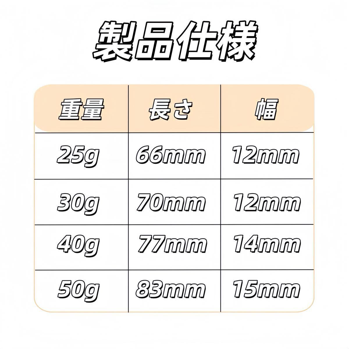 25g〜50gの多サイズ展開、様々な魚種・釣法に対応