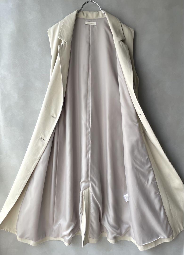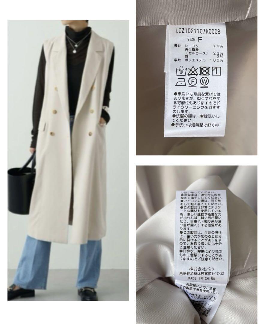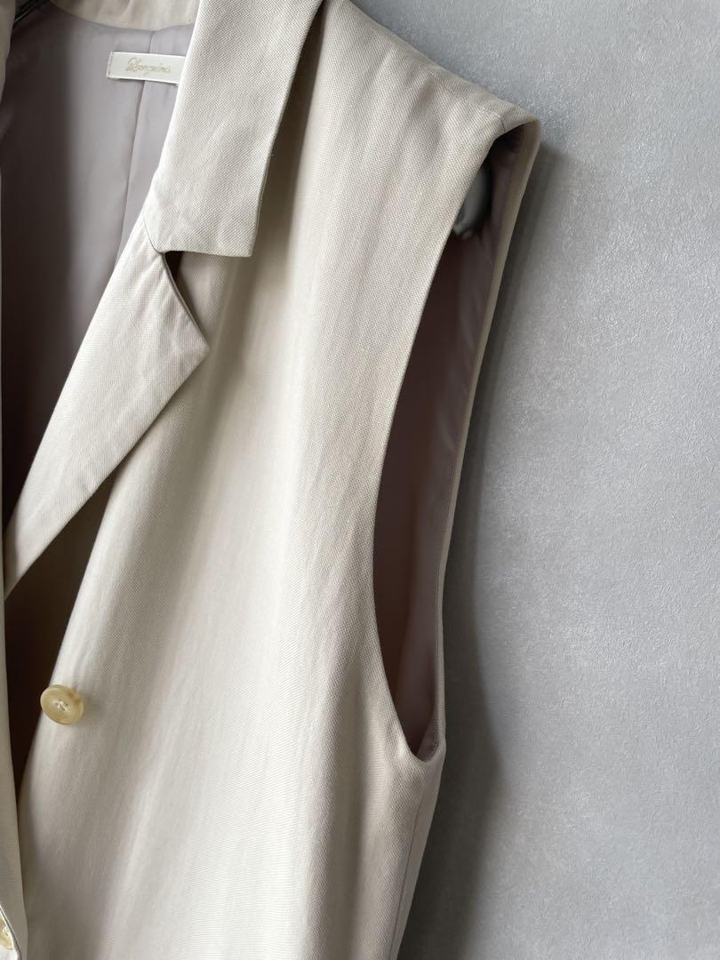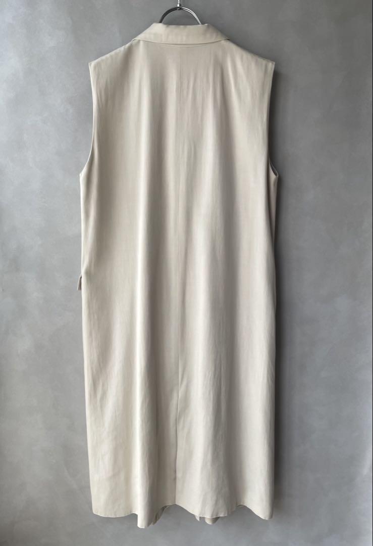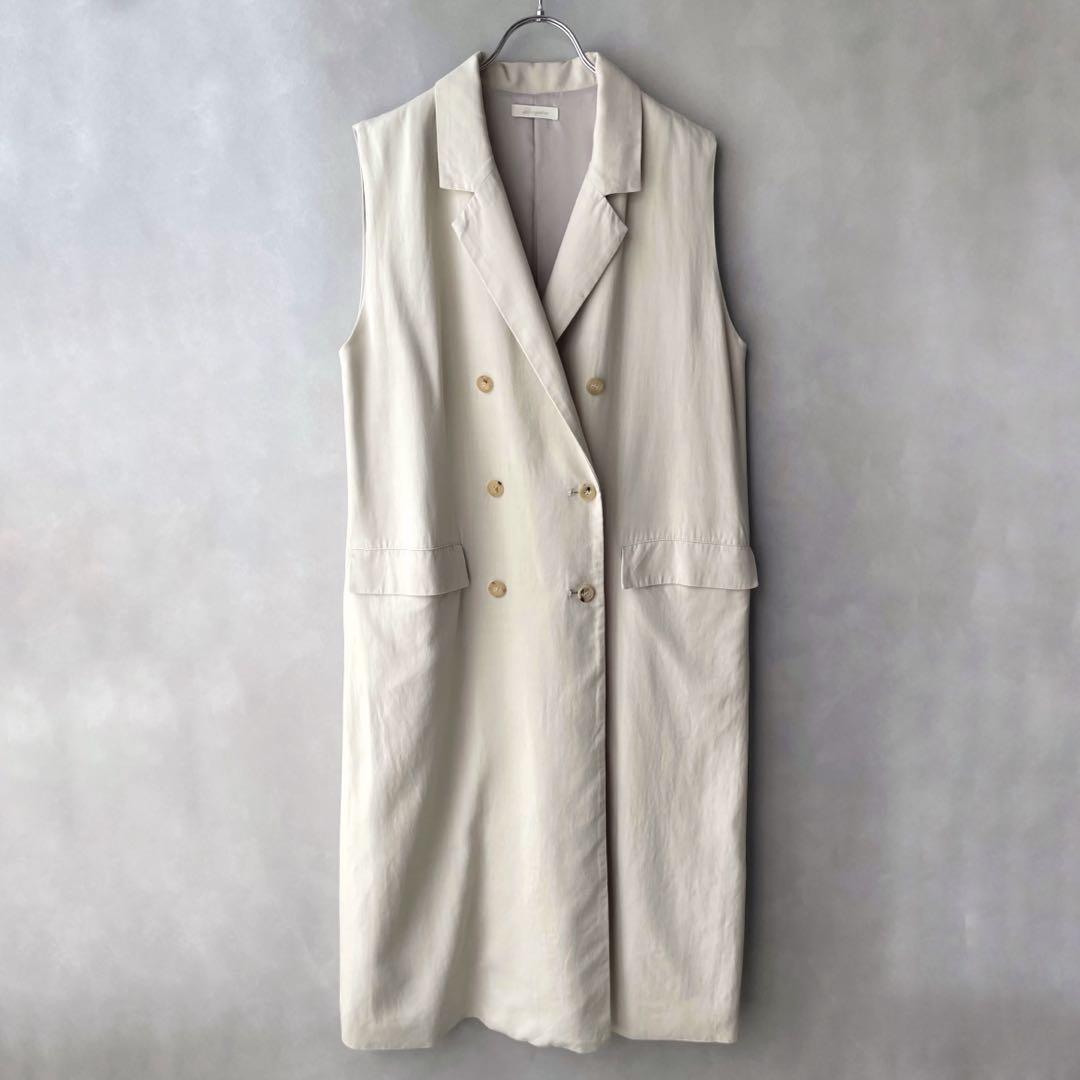 ラウンジドレス 麻混 ロングジレ ロングベスト ダブル レディース サイズフリー 薄ベージュ 定価2.3万