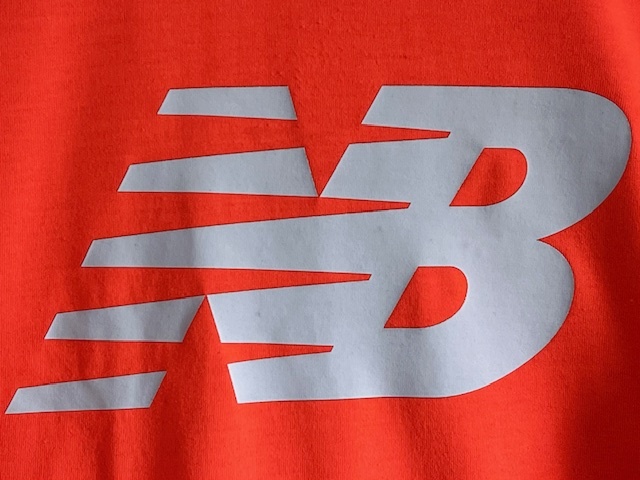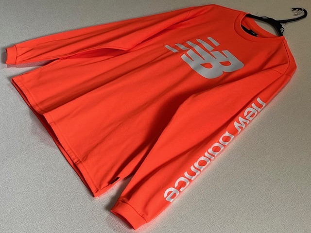 メンズ    NB    長袖Tシャツ   ロンT    フロント 左袖    ロゴプリント    蛍光オレンジ