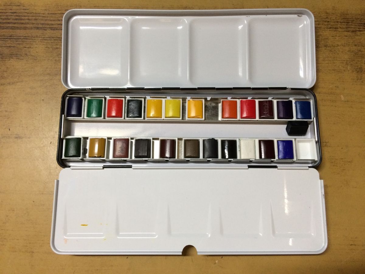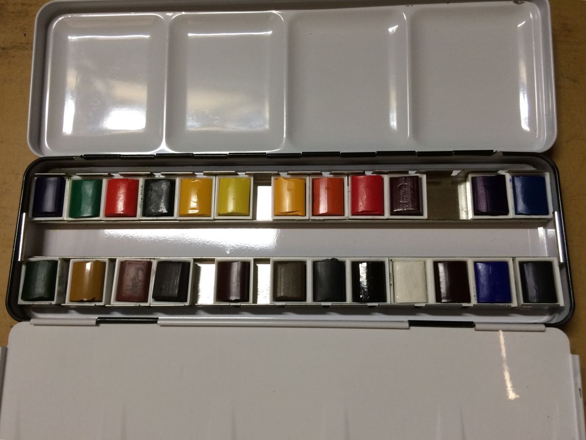 HH331 ウィンザー&ニュートン コットマン・ウォーターカラー ハーフパン 24色 メタルスケッチャーズボックスセット ソト箱付き/60