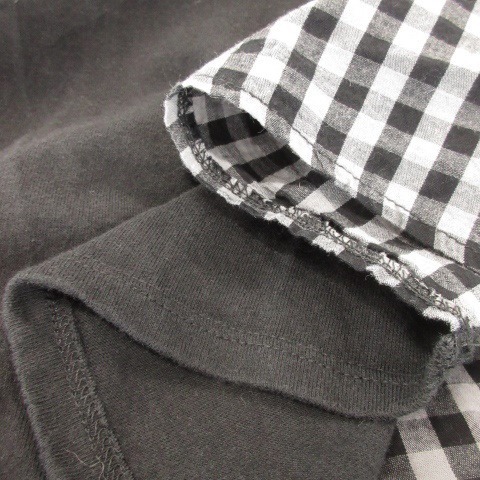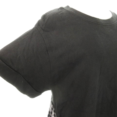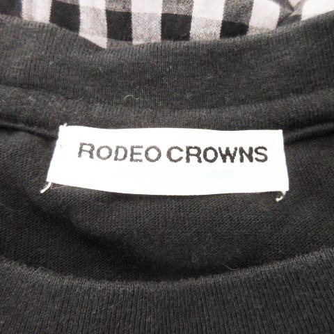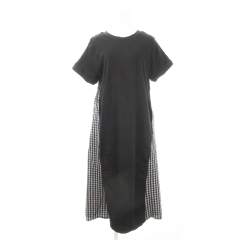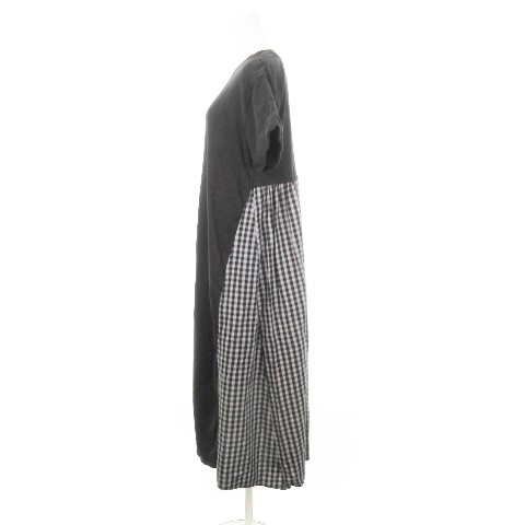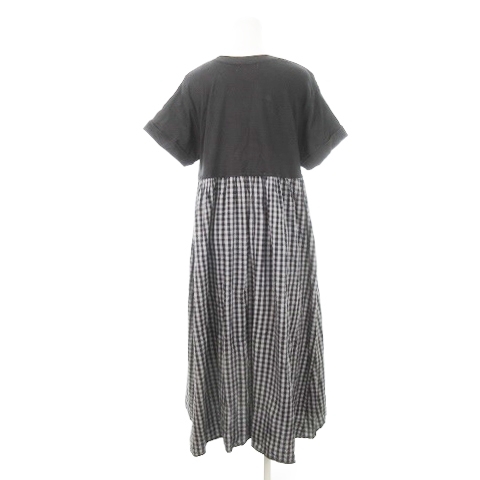 ロデオクラウンズ Rodeo Crowns 異素材ドッキングワンピース ロング 半袖 コットン 切り替え ギンガムチェック F 黒 ブラック グレー